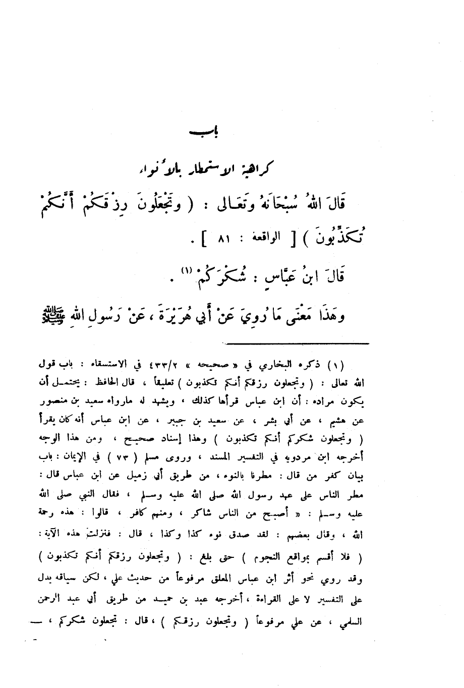 بَابُ كَرَاهِيَةِ الاسْتِمْطَارِ بِالأَنْوَاءِ