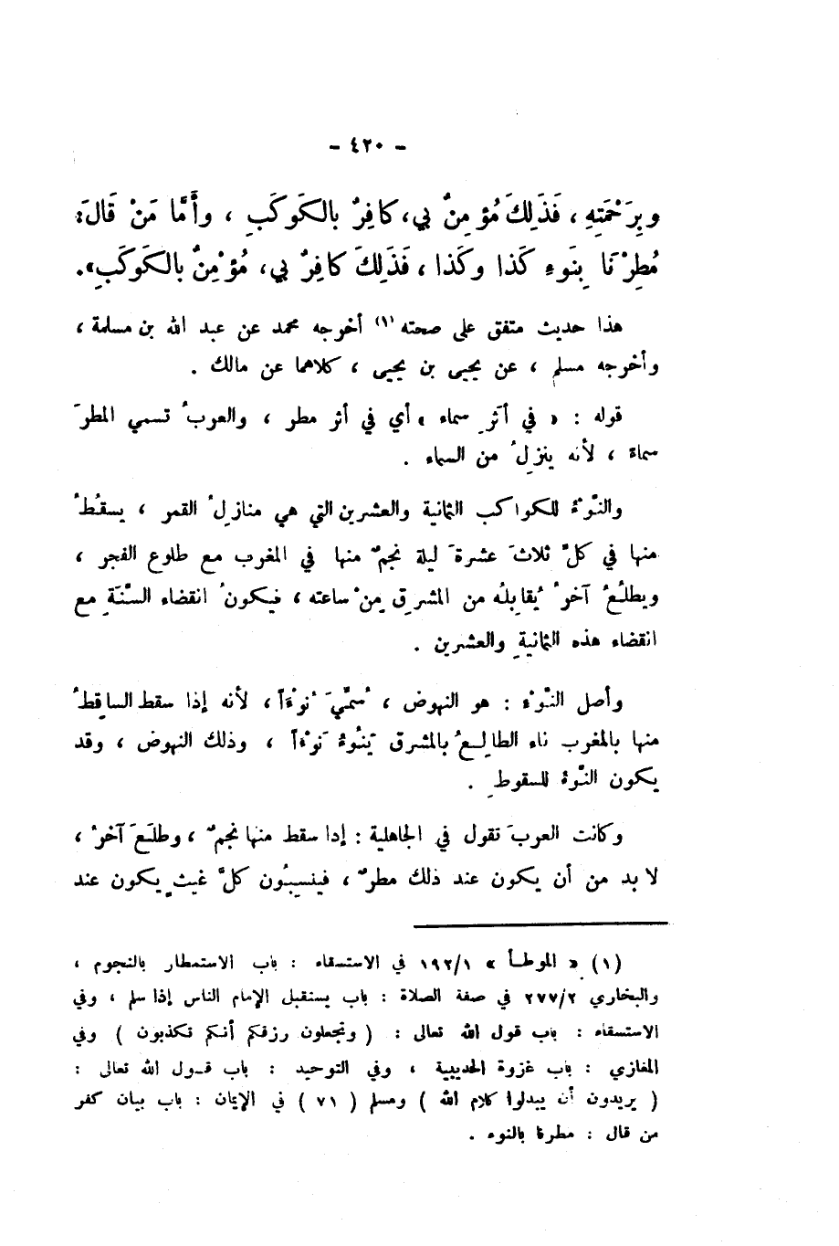 وَبِرَحْمَتِهِ فَذَلِكَ مُؤْمِنٌ بِي، كَافِرٌ بِالْكَوْكَبِ، وَأَمَّا مَنْ قَالَ: مُطِرْنَا بِنَوْءِ كَذَا وَكَذَا، فَذَلِكَ كَافِرٌ بِي، مُؤْمِنٌ بِالْكَوْكَبِ ".