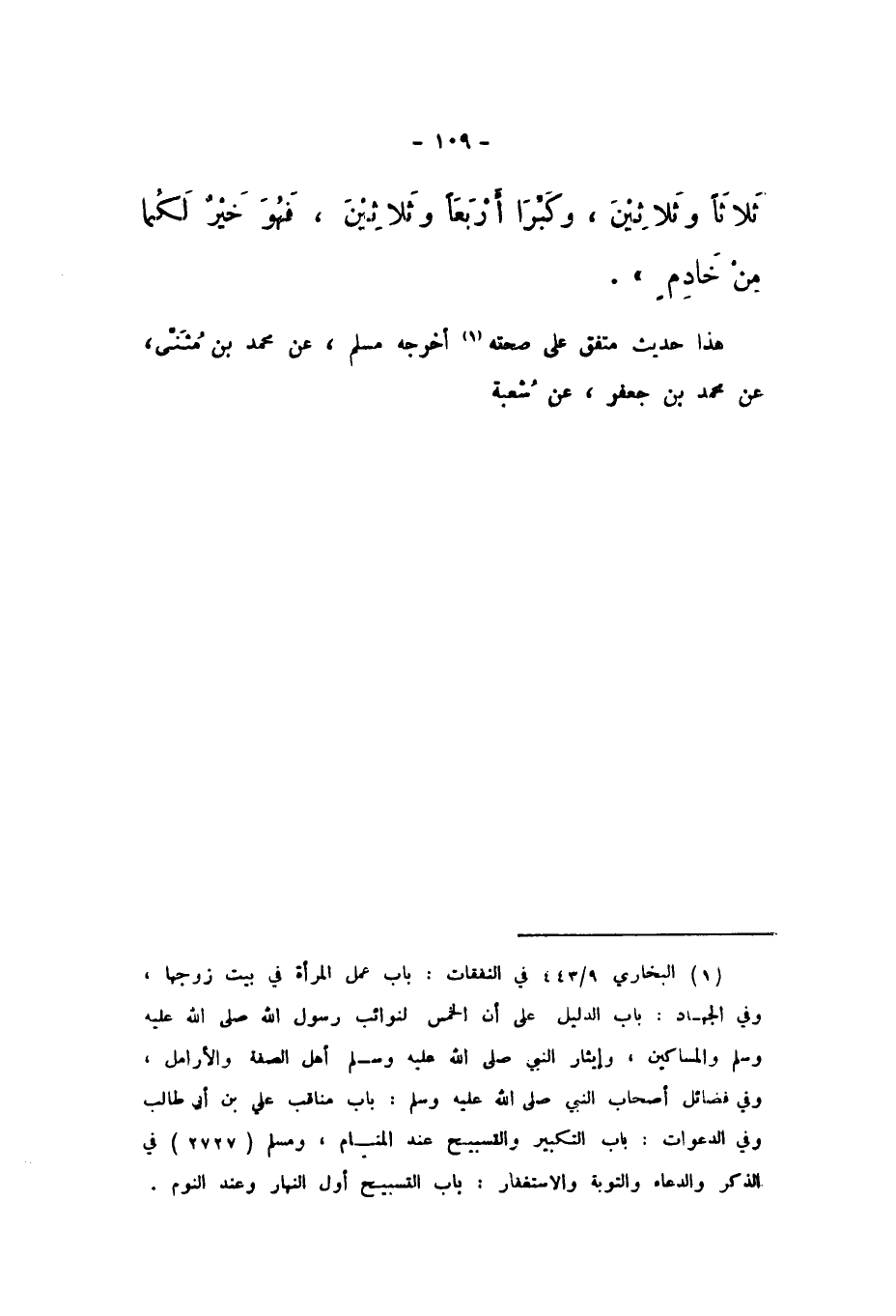 ثَلاثًا وَثَلاثِينَ، وَكَبِّرَا أَرْبَعًا وَثَلاثِينَ، فَهُوَ خَيْرٌ لَكُمَا مِنْ خَادِمٍ».
