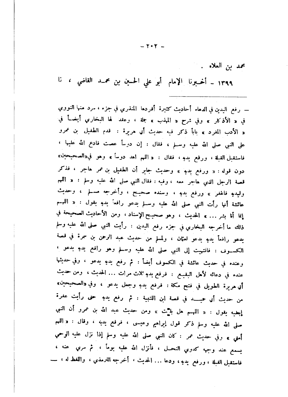 1399 - أَخْبَرَنَا الإِمَامُ أَبُو عَلِيٍّ الْحُسَيْنُ بْنُ مُحَمَّدٍ الْقَاضِي، نَا