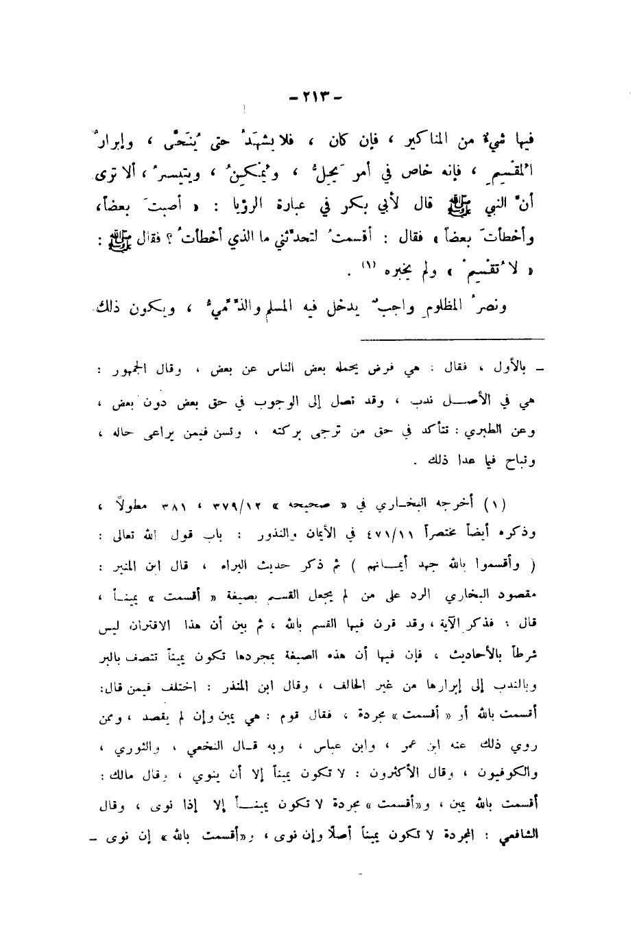 فِيهَا شَيْءٌ مِنَ الْمَنَاكِيرِ، فَإِنْ كَانَ، فَلا يَشْهَدُ حَتَّى يُنَحَّى، وَإِبْرَارُ الْمُقْسِمِ، فَإِنَّهُ خَاصٌّ فِي أَمْرٍ يَحِلُّ، وَيُمْكِنُ، وَيَتَيَسَّرُ، أَلا تَرَى أَنَّ النَّبِيَّ صَلَّى اللهُ عَلَيْهِ وَسَلَّمَ، قَالَ لأَبِي بَكْرٍ فِي عِبَارَةِ الرُّؤْيَا: «أَصَبْتَ بَعْضًا، وَأَخْطَأْتَ بَعْضًا».