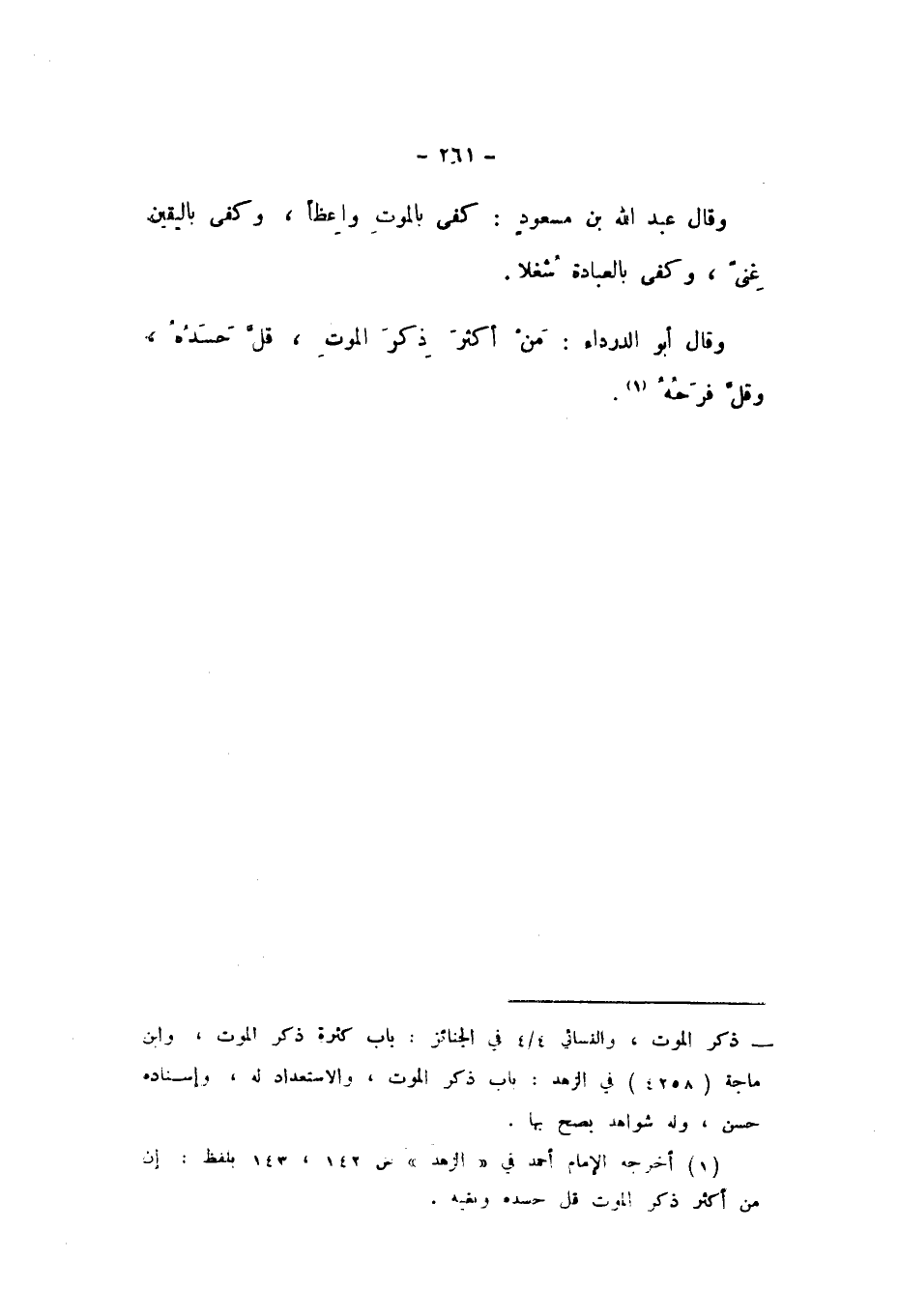 وَقَالَ عَبْدُ اللَّهِ بْنُ مَسْعُودٍ: كَفَى بِالْمَوْتِ وَاعِظًا، وَكَفَى بِالْيَقِينِ غِنًى، وَكَفَى بِالْعِبَادَةِ شُغْلا.