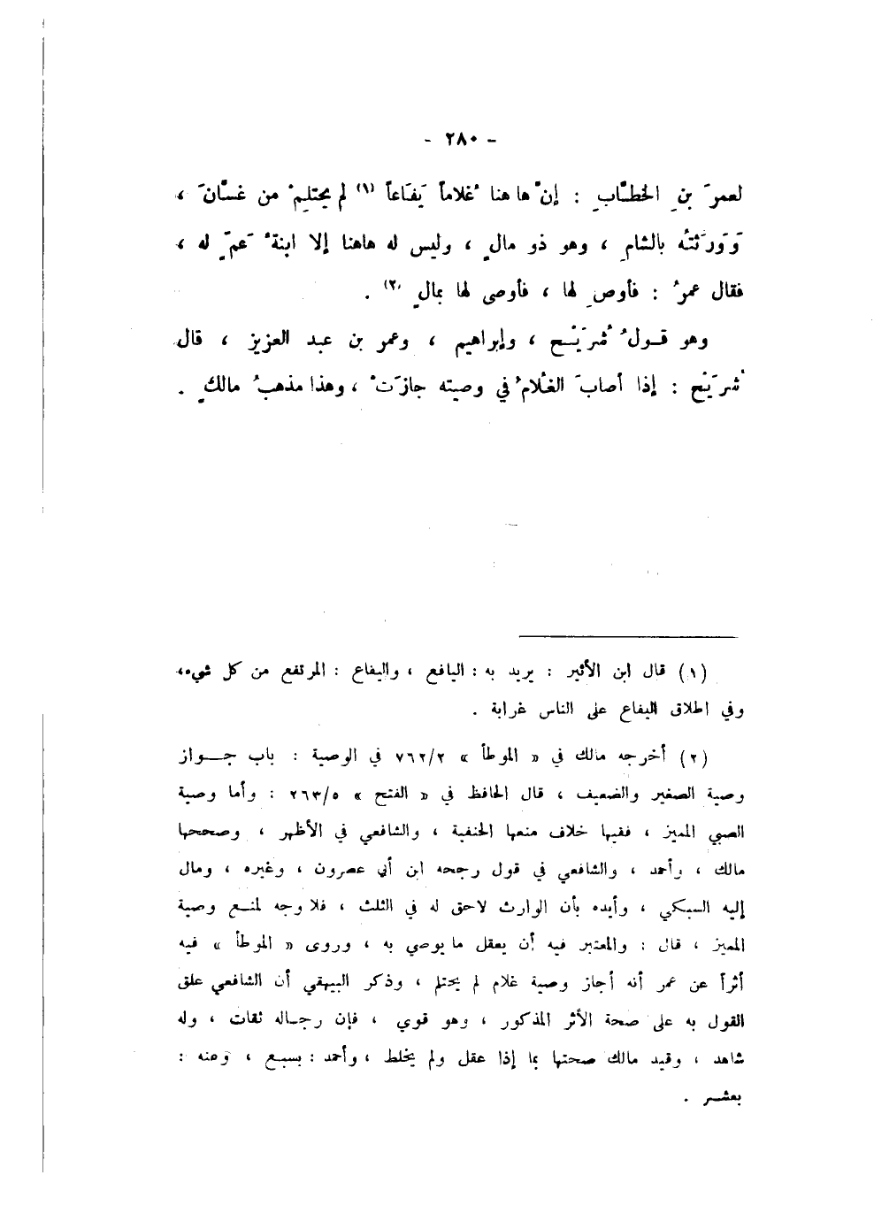 لِعُمَرَ بْنِ الْخَطَّابِ: إِنَّ هَهُنَا غُلامًا يَفَاعًا لَمْ يَحْتَلِمْ مِنْ غَسَّانَ، وَوَرَثَتُهُ بِالشَّامِ، وَهُوَ ذُو مَالٍ، وَلَيْسَ لَهُ هَهُنَا إِلا ابْنَةُ عَمٍّ لَهُ، فَقَالَ عُمَرُ: فَأَوْصِ لَهَا، فَأَوْصَى لَهَا بِمَالٍ.