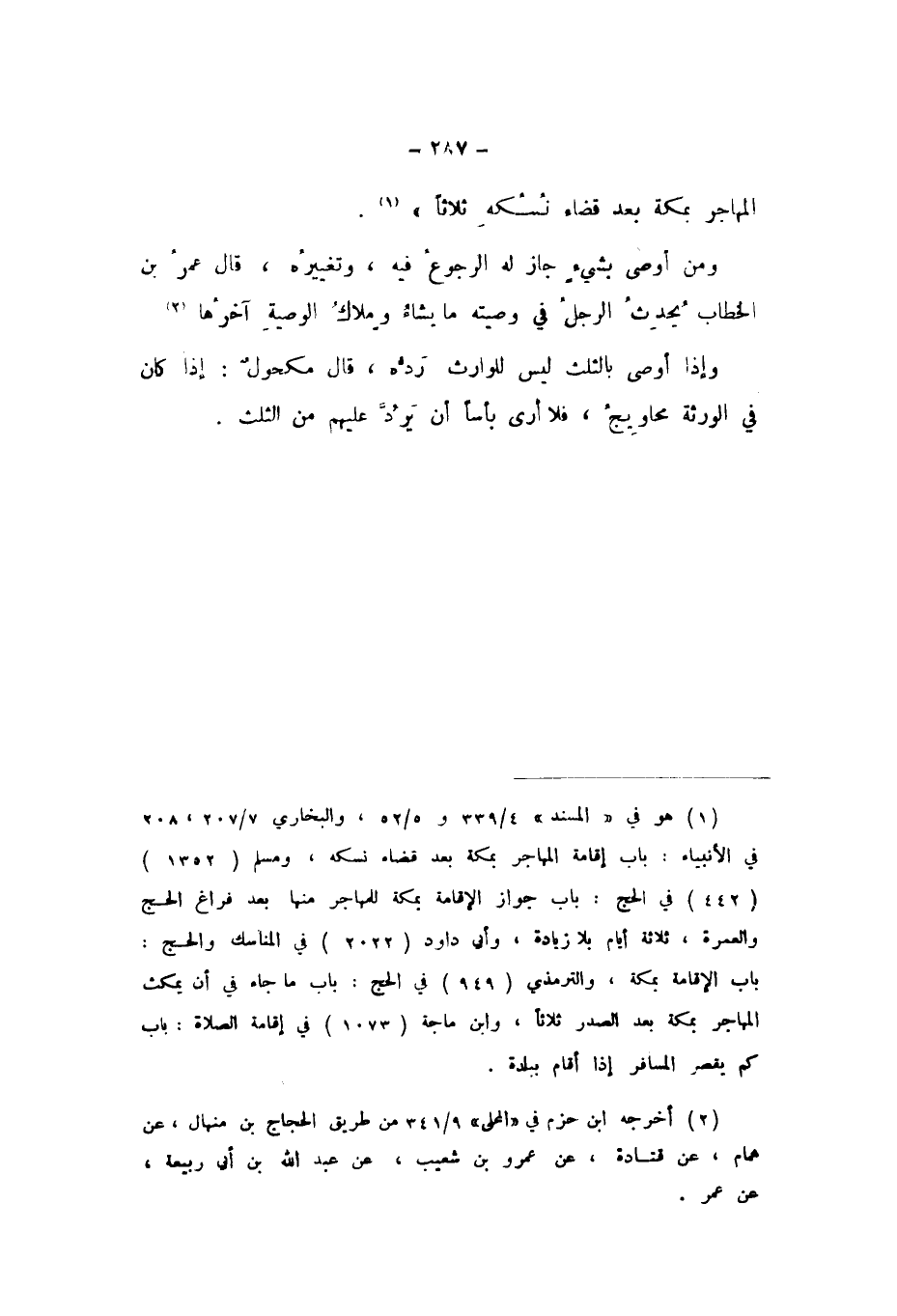 الْمُهَاجِرُ بِمَكَّةَ بَعْدَ قَضَاءِ نُسُكِهِ ثَلاثًا».