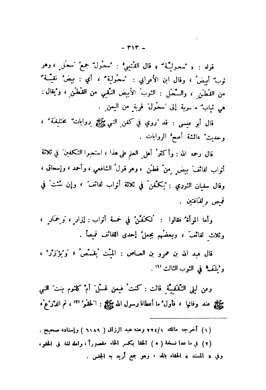 قَالَ رَحِمَهُ اللَّهُ: وَأَكْثَرُ أَهْلِ الْعِلْمِ عَلَى هَذَا، اسْتَحَبُّوا التَّكْفِينَ فِي ثَلاثَةِ أَثْوَابٍ لَفَائِفَ بِيضٍ مِنْ قُطْنٍ، وَهُوَ قَوْلُ الشَّافِعِيِّ، وَأَحْمَدَ، وَإِسْحَاقَ، وَقَالَ سُفْيَانُ الثَّوْرِيُّ: يُكَفِّنُ فِي ثَلاثَةِ أَثْوَابٍ لَفَائِفَ، وَإِنْ شِئْتَ فِي قَمِيصٍ وَلِفَافَتَيْنِ.
