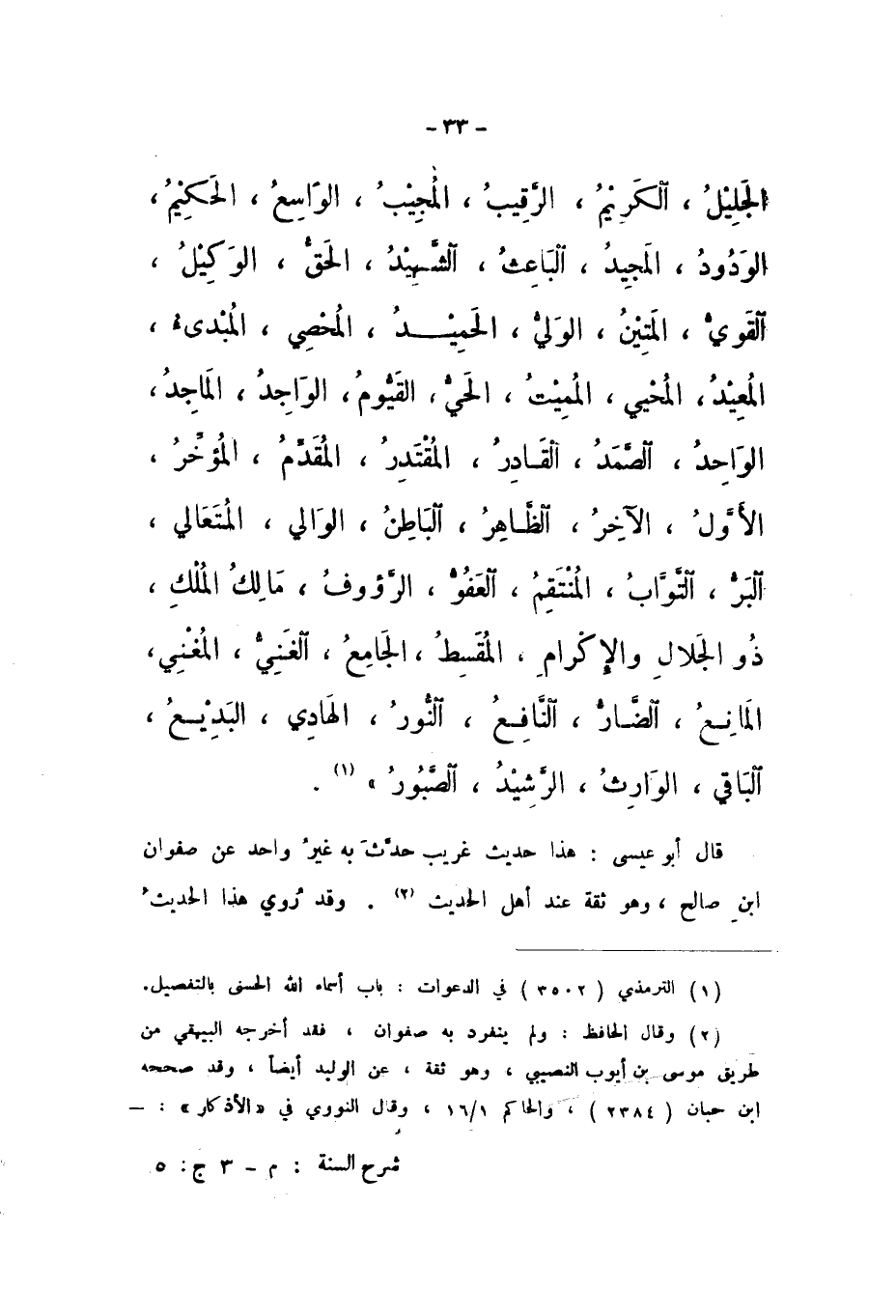 الْجَلِيلُ، الْكَرِيمُ، الرَّقِيبُ، الْمُجِيبُ، الْوَاسِعُ، الْحَكِيمُ، الْوَدُودُ، الْمَجِيدُ، الْبَاعِثُ، الشَّهِيدُ، الْحَقُّ، الْوَكِيلُ، الْقَوِيُّ، الْمَتِينُ، الْوَلِيُّ، الْحَمِيدُ، الْمُحْصِي، الْمُبْدِئُ، الْمُعِيدُ، الْمُحْيِي، الْمُمِيتُ، الْحَيُّ، الْقَيُّومُ، الْوَاجِدُ، الْمَاجِدُ، الْوَاحِدُ، الصَّمَدُ، الْقَادِرُ، الْمُقْتَدِرُ، الْمُقَدِّمُ، الْمُؤَخِّرُ، الأَوَّلُ، الآخِرُ، الظَّاهِرُ، الْبَاطِنُ، الْوَالِي، الْمُتَعَالِي، الْبَرُّ، التَّوَّابُ، الْمُنْتَقِمُ، الْعَفُوُّ، الرَّءُوفُ، مَالِكُ الْمُلْكِ، ذُو الْجَلالِ وَالإِكْرَامِ، الْمُقْسِطُ، الْجَامِعُ، الْغَنِيُّ، الْمُغْنِي، الْمَانِعُ، الضَّارُّ، النَّافِعُ، النُّورُ، الْهَادِي، الْبَدِيعُ، الْبَاقِي، الْوَارِثُ، الرَّشِيدُ، الصَّبُورُ ".
