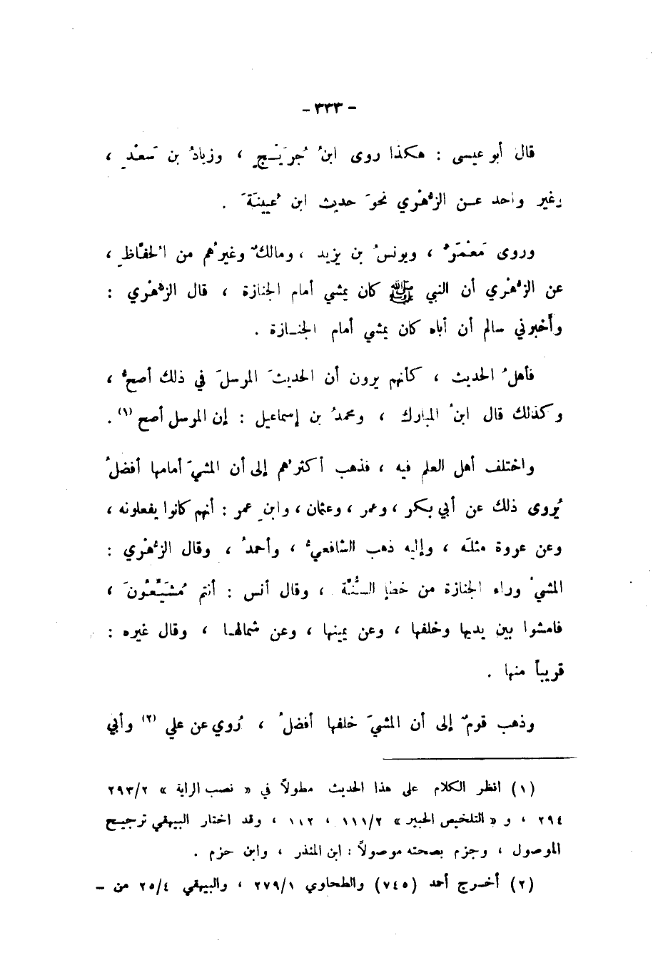 وَرَوَى مَعْمَرٌ، وَيُونُسُ بْنُ يَزِيدَ، وَمَالِكٌ، وَغَيْرُهُمْ مِنَ الْحُفَّاظِ، عَنِ الزُّهْرِيِّ: «أَنَّ النَّبِيَّ صَلَّى اللهُ عَلَيْهِ وَسَلَّمَ كَانَ يَمْشِي أَمَامَ الْجِنَازَةِ»، قَالَ الزُّهْرِيُّ: وَأَخْبَرَنِي سَالِمٌ أَنَّ أَبَاهُ كَانَ يَمْشِي أَمَامَ الْجِنَازَةِ.
