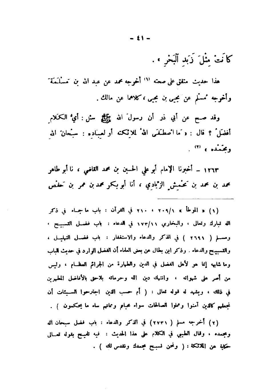 وَقَدْ صَحَّ عَنْ أَبِي ذَرٍّ أَنَّ رَسُولَ اللَّهِ صَلَّى اللهُ عَلَيْهِ وَسَلَّمَ سُئِلَ: أَيُّ الْكَلامِ أَفْضَلُ؟ قَالَ: " مَا اصْطَفَى اللَّهُ لِمَلائِكَتِهِ أَوْ لِعِبَادِهِ: سُبْحَانَ اللَّهِ وَبِحَمْدِهِ "