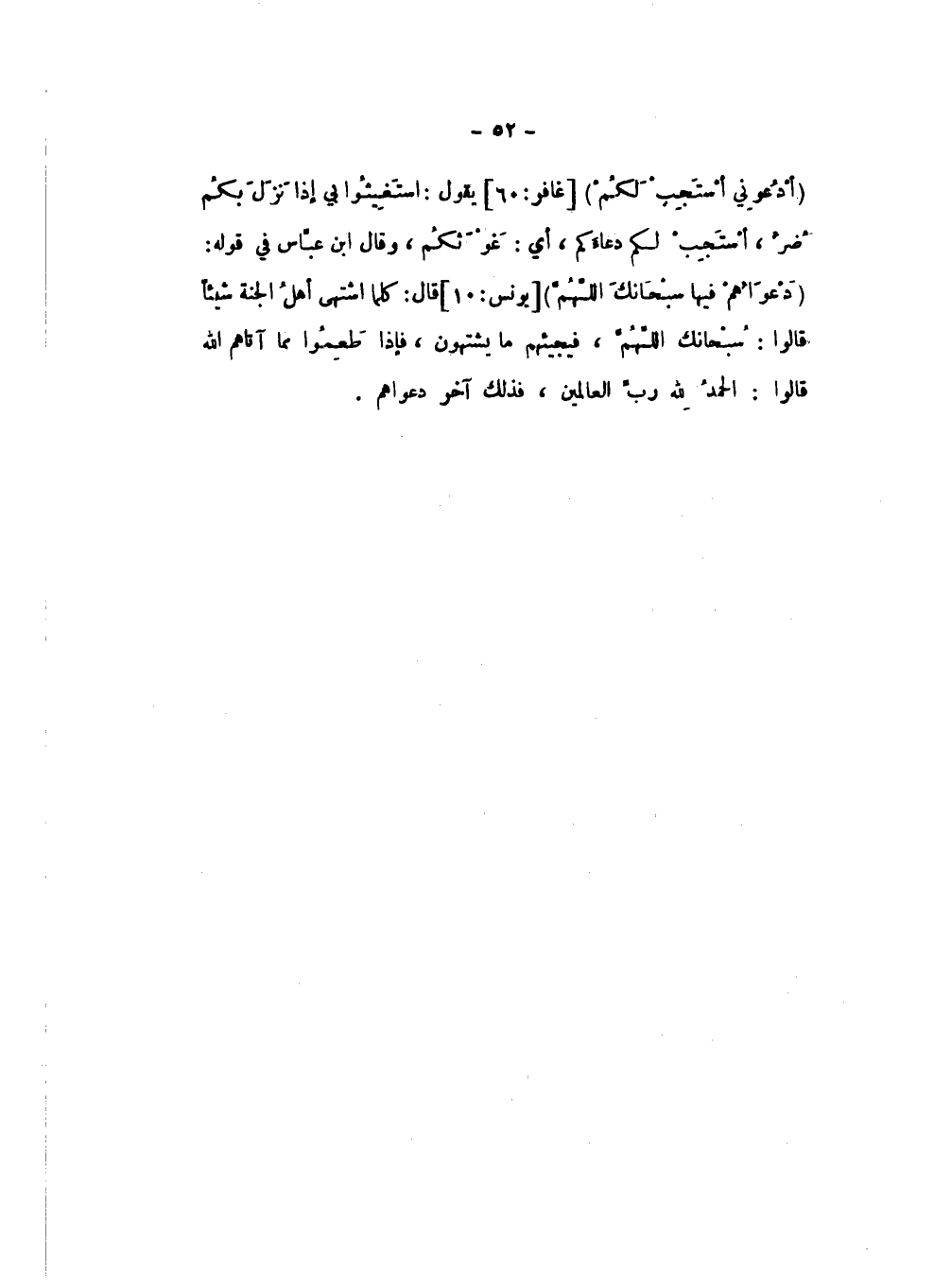 ادْعُونِي أَسْتَجِبْ لَكُمْ} [غَافِر: 60]، يَقُولُ: اسْتَغِيثُوا بِي إِذَا نَزَلَ بِكُمْ ضُرٌّ، أَسْتَجِبْ لَكُمْ دُعَاءَكُمْ، أَيْ: غَوْثَكُمْ، وَقَالَ ابْنُ عَبَّاسٍ فِي قَوْلِهِ: {دَعْوَاهُمْ فِيهَا سُبْحَانَكَ اللَّهُمَّ} [يُونُس: 10]، قَالَ: كُلَّمَا اشْتَهَى أَهْلُ الْجَنَّةِ شَيْئًا، قَالُوا: سُبْحَانَكَ اللَّهُمَّ.