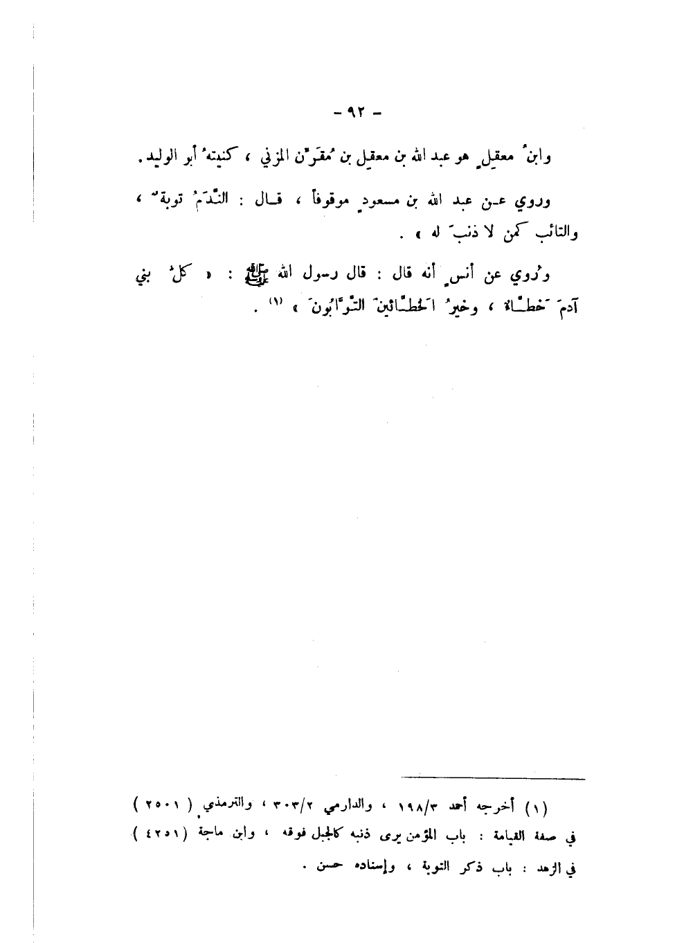 وَابْنُ مَعْقِلٍ هُوَ: عَبْدُ اللَّهِ بْنُ مَعْقِلِ بْنِ مُقَرَّنٍ الْمُزَنِيُّ كُنْيَتُهُ أَبُو الْوَلِيدِ.