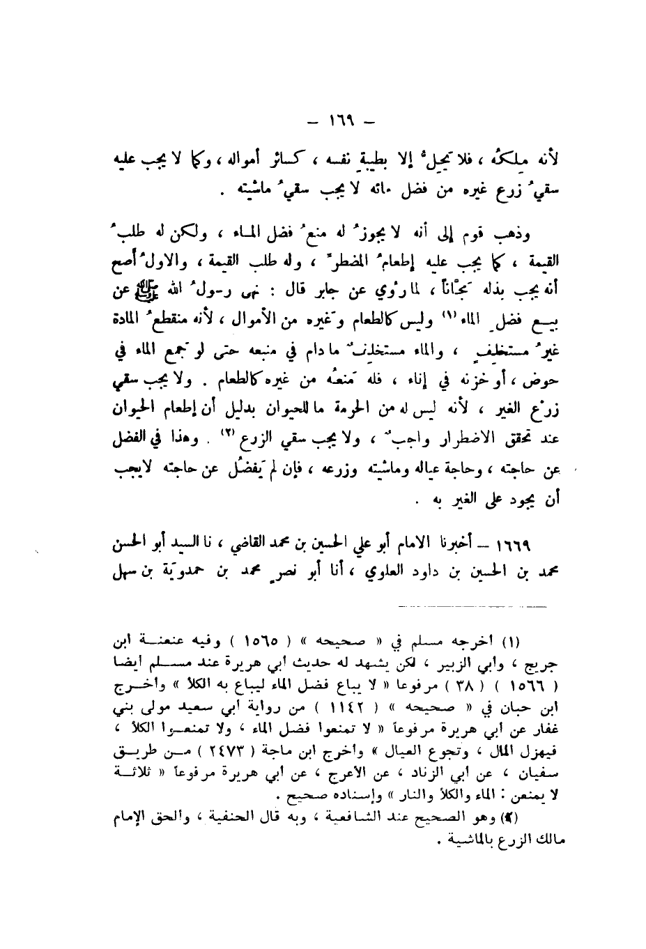 1669 - أَخْبَرَنَا الإِمَامُ أَبُو عَلِيٍّ الْحُسَيْنُ بْنُ مُحَمَّدٍ الْقَاضِي، نَا السَّيِّدُ أَبُو الْحَسَنِ مُحَمَّدُ بْنُ الْحُسَيْنِ بْنِ دَاوُدَ الْعَلَوِيُّ، أَنا أَبُو نَصْرٍ مُحَمَّدُ بْنُ حَمْدَوَيْهِ بْنِ سَهْلٍ