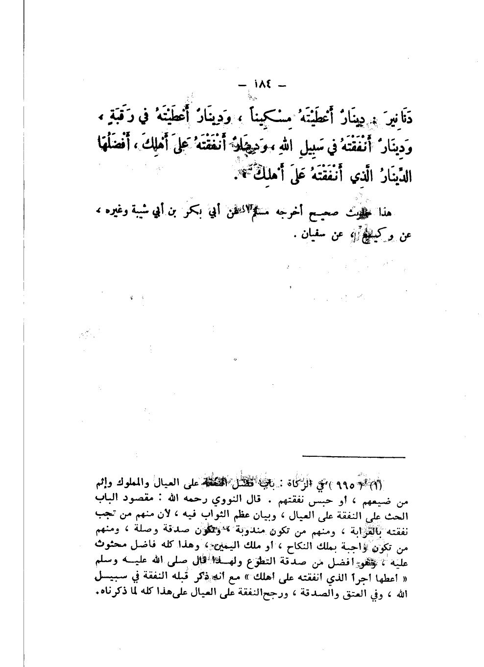 دَنَانِيرَ: دِينَارٌ أَعْطَيْتَهُ مِسْكِينًا، وَدِينَارٌ أَعْطَيْتَهُ فِي رَقَبَةٍ، وَدِينَارٌ أَنْفَقْتَهُ فِي سَبِيلِ اللَّهِ، وَدِينَارٌ أَنْفَقْتَهُ عَلَى أَهْلِكَ، أَفْضَلُهَا الدِّينَارُ الَّذِي أَنْفَقْتَهُ عَلَى أَهْلِكَ ".