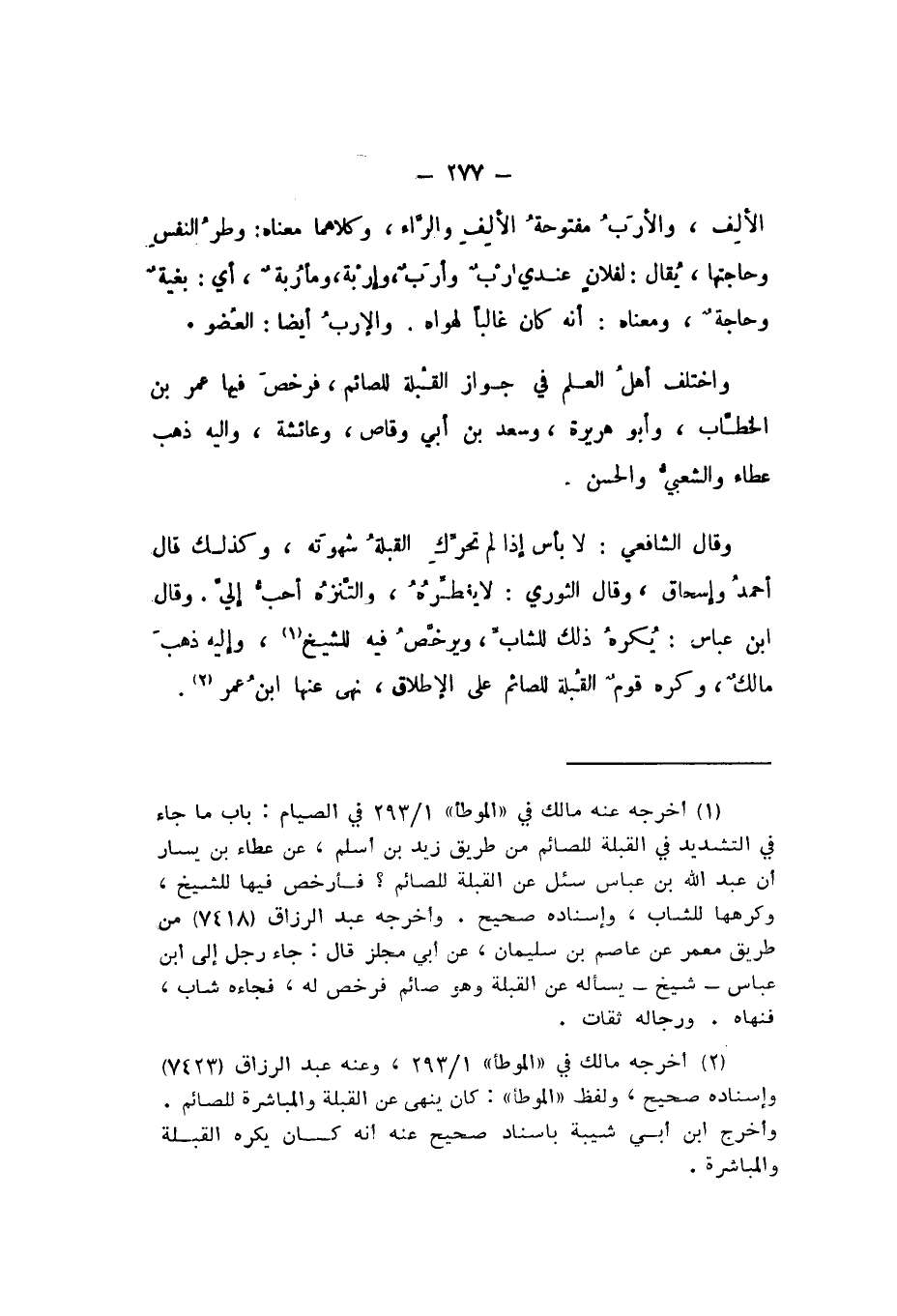 وَاخْتَلَفَ أَهْلُ الْعِلْمِ فِي جَوَازِ الْقُبْلَةِ لِلصَّائِمِ، فَرَخَّصَ فِيهَا عُمَرُ بْنُ الْخَطَّابِ، وَأَبُو هُرَيْرَةَ، وَسَعْدُ بْنُ أَبِي وَقَّاصٍ، وَعَائِشَةُ.
