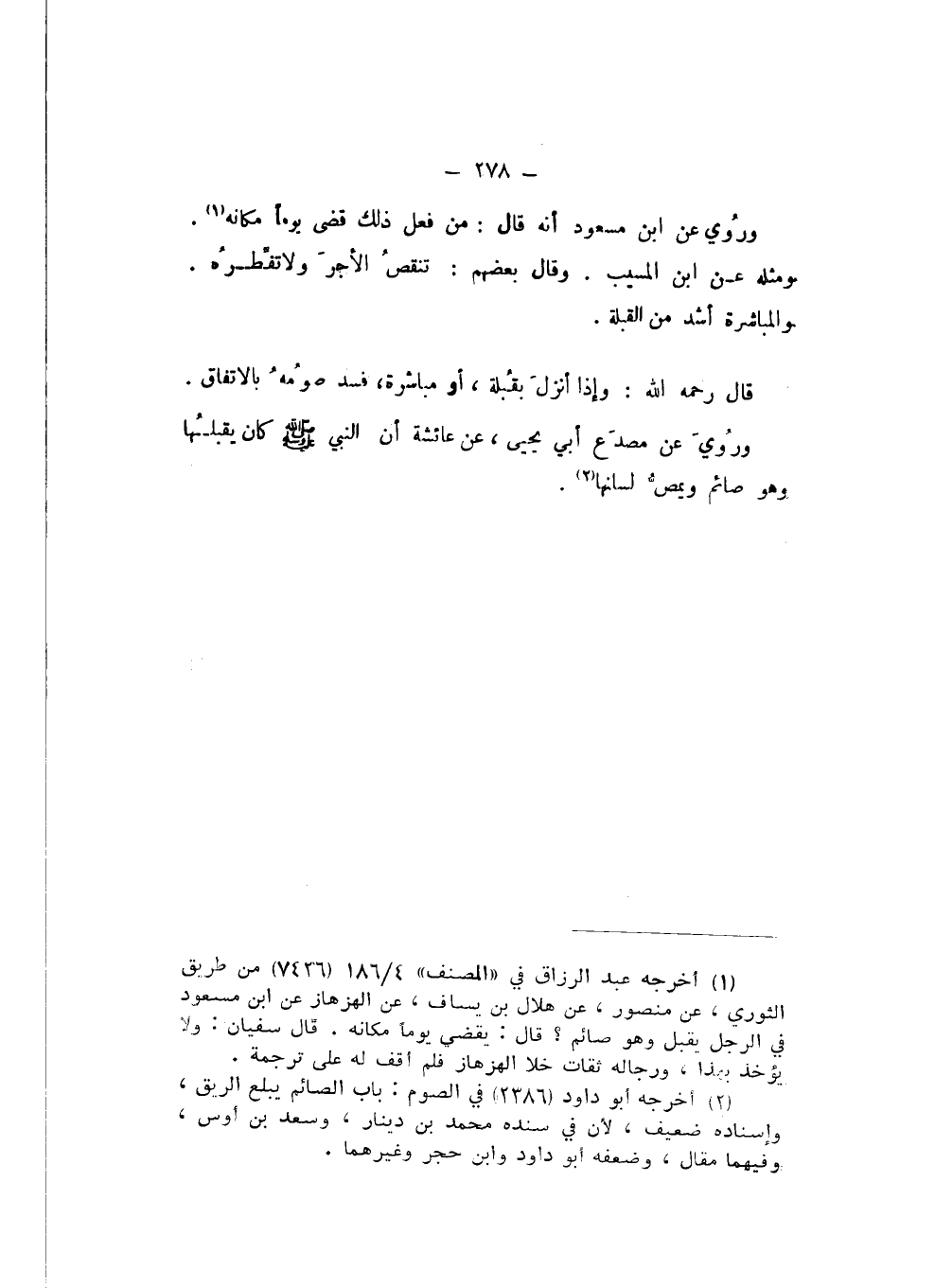 وَرُوِيَ عَنْ مِصْدَعٍ أَبِي يَحْيَى، عَنْ عَائِشَةَ، أَنَّ النَّبِيَّ صَلَّى اللهُ عَلَيْهِ وَسَلَّمَ كَانَ يُقَبِّلُهَا وَهُوَ صَائِمٌ، وَيَمُصُّ لِسَانَهَا.