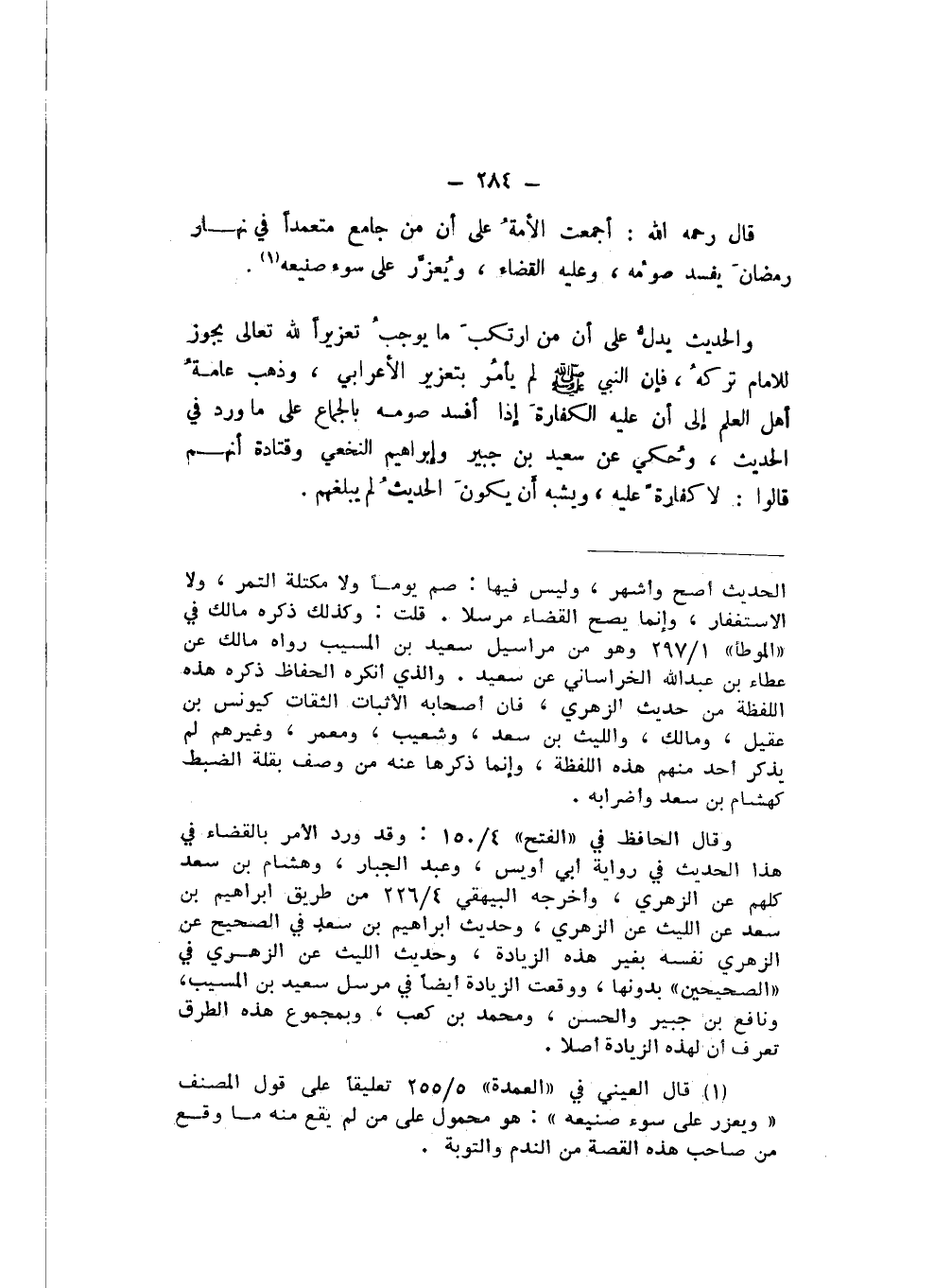 قَالَ رَحِمَهُ اللَّهُ: أَجْمَعَتِ الْأُمَّةُ عَلَى أَنَّ مَنْ جَامَعَ مُتَعَمِّدًا فِي نَهَارِ رَمَضَانَ يَفْسَدُ صَوْمُهُ، وَعَلَيْهِ الْقَضَاءُ، وَيُعَزَّرُ عَلَى سُوءِ صَنِيعِهِ.
