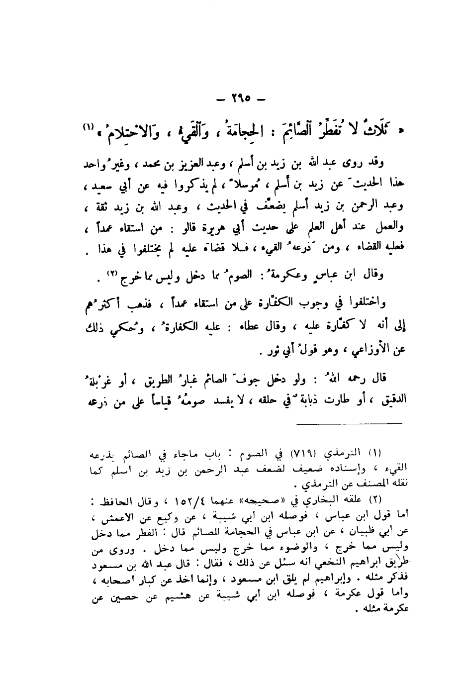 وَالْعَمَلُ عِنْدَ أَهْلِ الْعِلْمِ عَلَى حَدِيثِ أَبِي هُرَيْرَةَ، قَالَ: «مَنِ اسْتَقَاءَ عَمْدًا، فَعَلَيْهِ الْقَضَاءُ، وَمَنْ ذَرَعَهُ الْقَيْءُ، فَلا قَضَاءَ عَلَيْهِ»، لَمْ يَخْتَلِفُوا فِي هَذَا.
