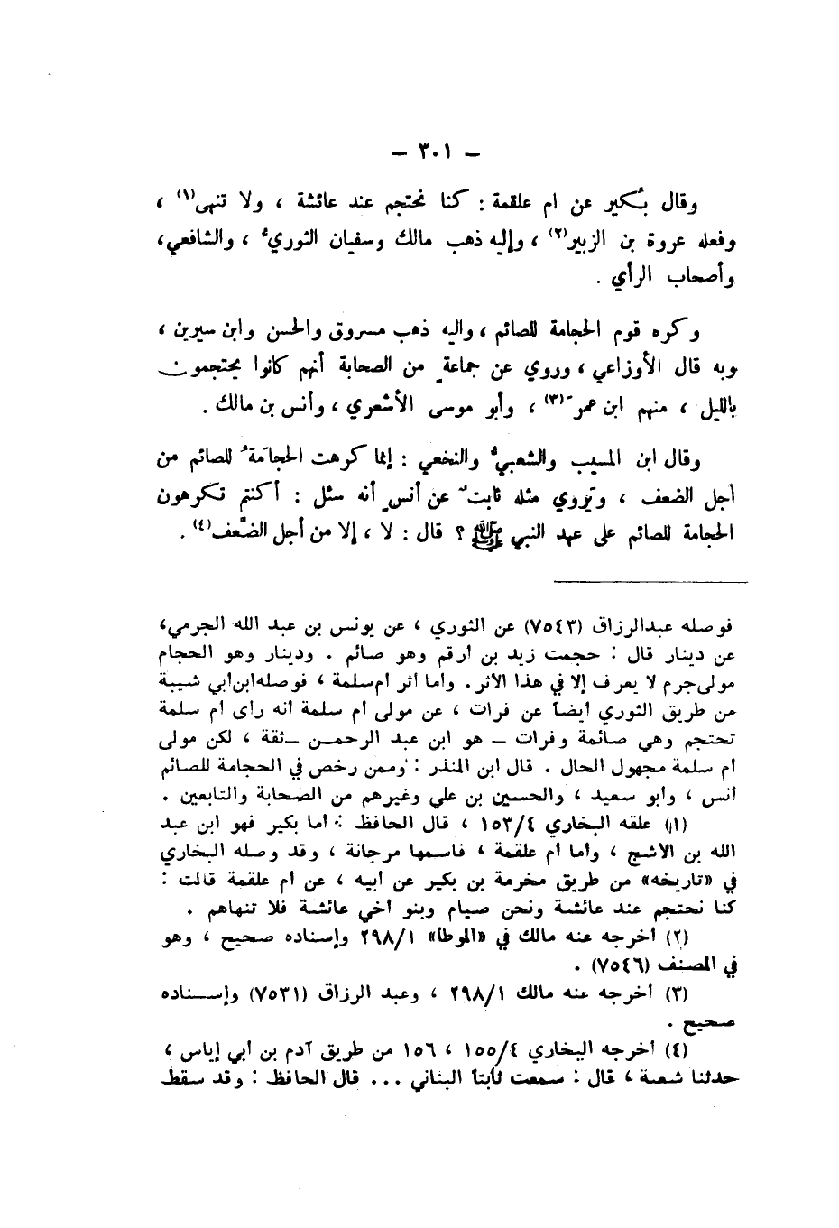 وَقَالَ بُكَيْرٌ، عَنْ أُمِّ عَلْقَمَةَ: كُنَّا نَحْتَجِمُ عِنْدَ عَائِشَةَ رَضِيَ اللَّهُ عَنْهَا، وَلا تَنْهَى، وَفَعَلَهُ عُرْوَةُ بْنُ الزُّبَيْرِ، وَإِلَيْهِ ذَهَبَ مَالِكٌ، وَسُفْيَانُ الثَّوْرِيُّ، وَالشَّافِعِيُّ، وَأَصْحَابُ الرَّأْيِ.