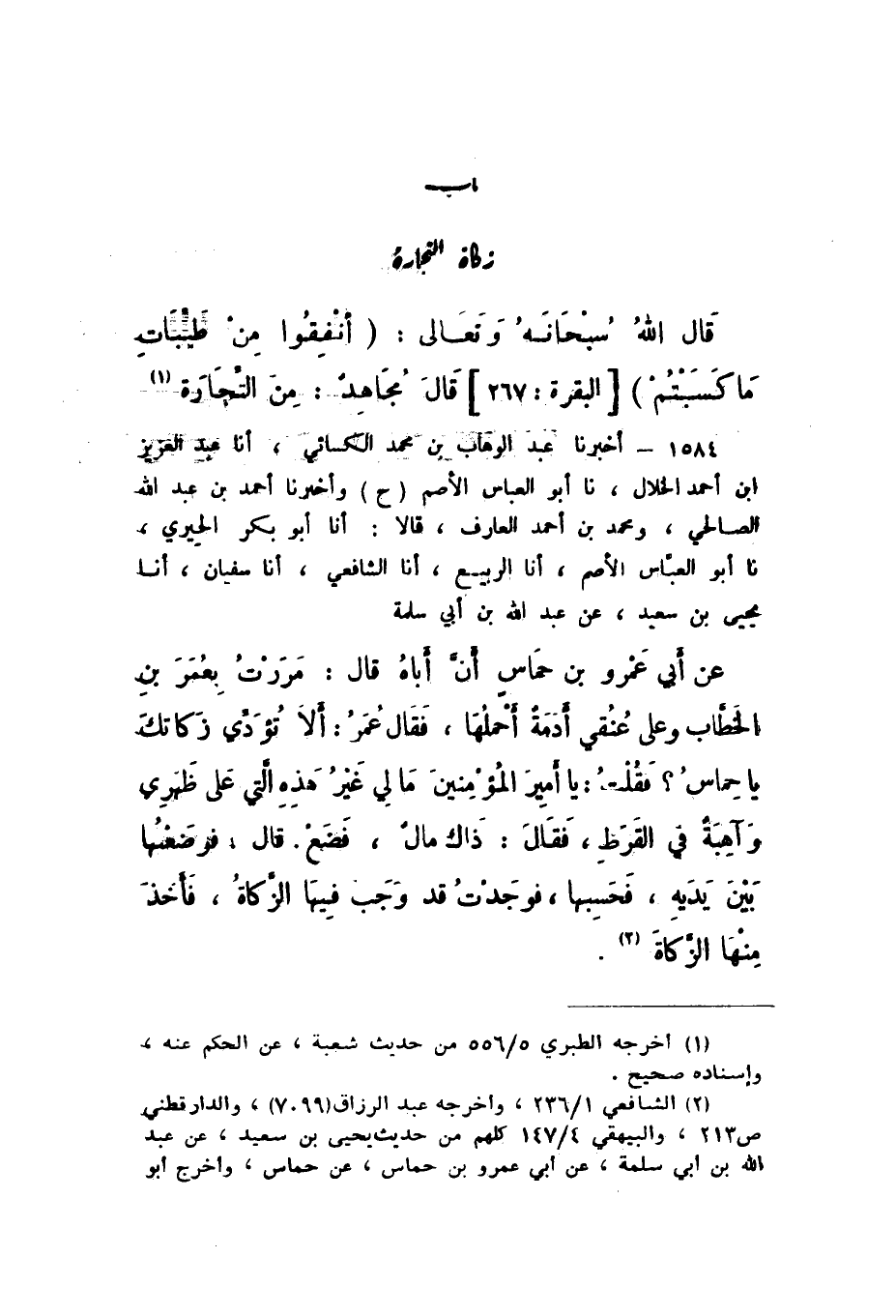 قَالَ اللَّهُ سُبْحَانَهُ وَتَعَالَى: {أَنْفِقُوا مِنْ طَيِّبَاتِ مَا كَسَبْتُمْ} [الْبَقَرَة: 267]، قَالَ مُجَاهِدٌ: مِنَ التَّجَارَةِ.