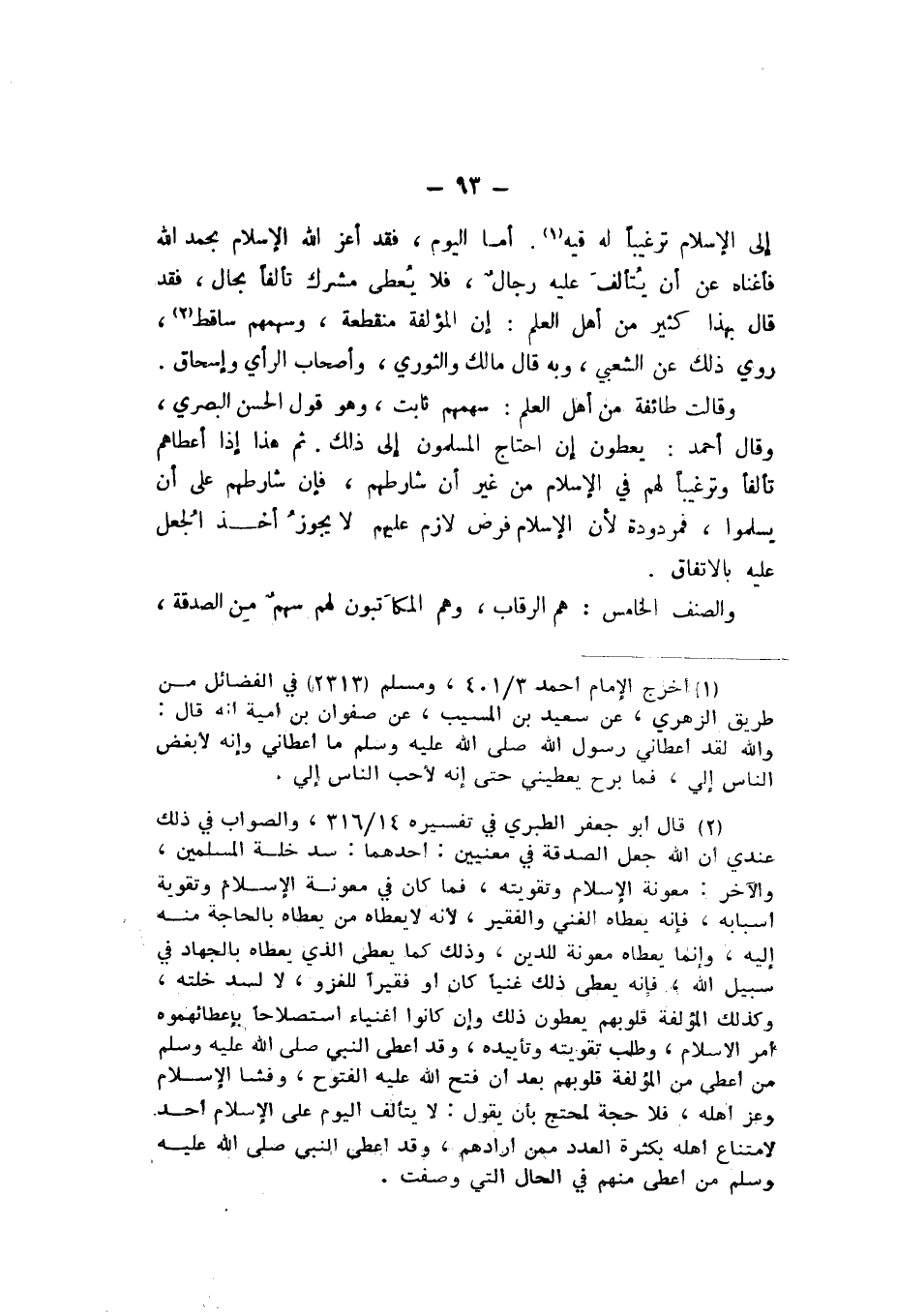 أَمَّا الْيَوْمَ، فَقَدْ أَعَزَّ اللَّهُ الإِسْلامَ بِحَمْدِ اللَّهِ، فَأَغْنَاهُ عَنْ أَنْ يَتَأَلَّفَ عَلَيْهِ رِجَالٌ، فَلا يُعْطَى مُشْرِكٌ تَأَلُّفًا بِحَالٍ، فَقَدْ قَالَ بِهَذَا كَثِيرٌ مِنْ أَهْلِ الْعِلْمِ: إِنَّ الْمُؤَلَّفَةَ مُنْقَطِعَةٌ، وَسَهْمُهُمْ سَاقِطٌ، رُوِيَ ذَلِكَ عَنِ الشَّعْبِيِّ، وَبِهِ قَالَ مَالِكٌ، وَالثَّوْرِيُّ، وَأَصْحَابُ الرَّأْيِ، وَإِسْحَاقُ.