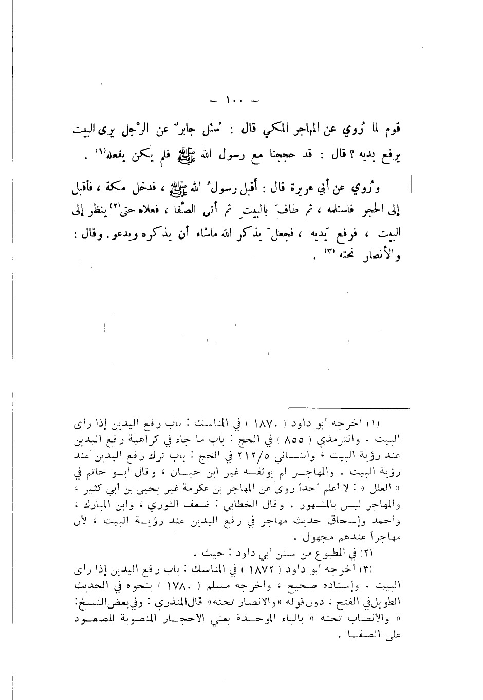 قَوْمٌ، لِمَا رُوِيَ عَنِ الْمُهَاجِرِ الْمَكِّيِّ، قَالَ: سُئِلَ جَابِرٌ، عَنِ الرَّجُلِ يَرَى الْبَيْتَ يَرْفَعُ يَدَيْهِ؟ قَالَ: قَدْ حَجَجْنَا مَعَ رَسُولِ اللَّهِ صَلَّى اللهُ عَلَيْهِ وَسَلَّمَ، فَلَمْ يَكُنْ يَفْعَلُهُ.