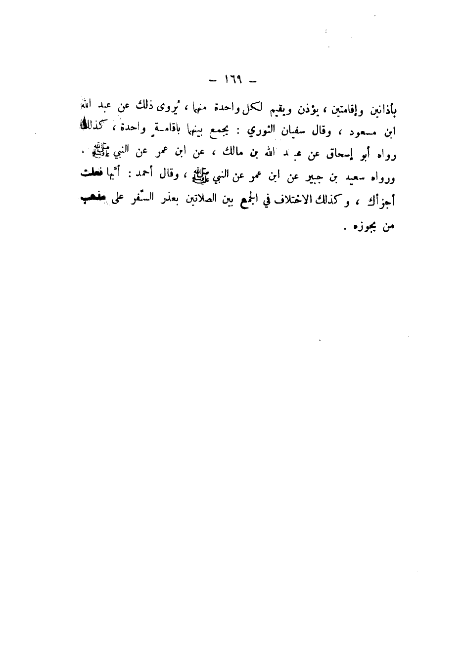 بِأَذَانَيْنِ وَإِقَامَتَيْنِ، يُؤَذِّنُ وَيُقِيمُ لِكُلِّ وَاحِدَةٍ مِنْهُمَا، يُرْوَى ذَلِكَ عَنْ عَبْدِ اللَّهِ بْنِ مَسْعُودٍ، وَقَالَ سُفْيَانُ الثَّوْرِيُّ: يَجْمَعُ بَيْنَهُمَا بِإِقَامَةٍ وَاحِدَةٍ، كَذَلِكَ رَوَاهُ أَبُو إِسْحَاقَ، عَنْ عَبْدِ اللَّهِ بْنِ مَالِكٍ عَنِ ابْنِ عُمَرَ، عَنِ النَّبِيِّ صَلَّى اللهُ عَلَيْهِ وَسَلَّمَ.