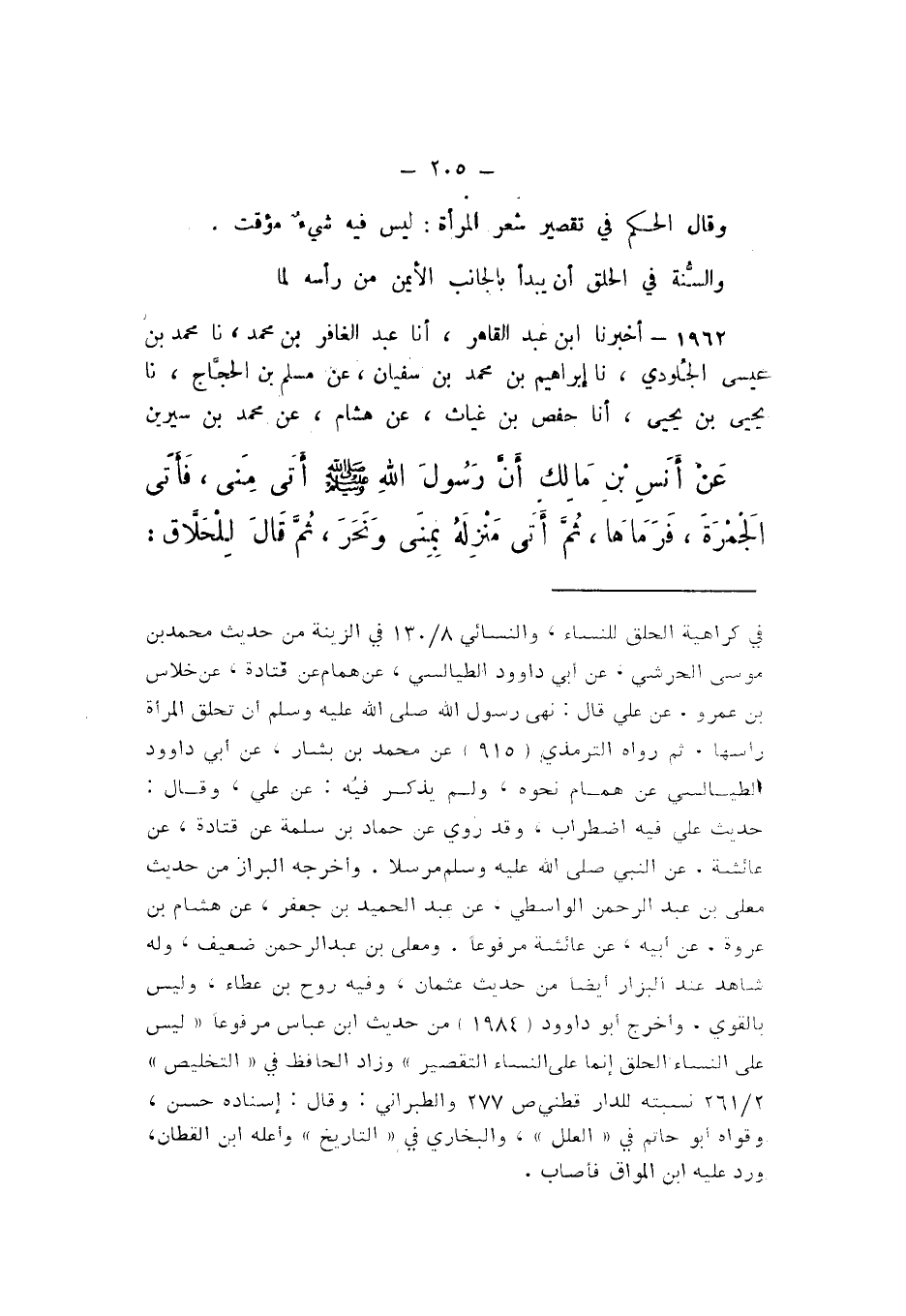 1962 - أَخْبَرَنَا ابْنُ عَبْدِ الْقَاهِرِ، أَنا عَبْدُ الْغَافِرِ بْنُ مُحَمَّدٍ، نَا مُحَمَّدُ بْنُ عِيسَى الْجُلُودِيُّ، نَا إِبْرَاهِيمُ بْنُ مُحَمَّدِ بْنِ سُفْيَانَ، عَنْ مُسْلِمِ بْنِ الْحَجَّاجِ، نَا يَحْيَى بْنُ يَحْيَى، أَنا حَفْصُ بْنُ غِيَاثٍ، عَنْ هِشَامٍ، عَنْ مُحَمَّدِ بْنِ سِيرِينَ، عَنْ أَنَسِ بْنِ مَالِكٍ، أَنّ رَسُولَ اللَّهِ صَلَّى اللهُ عَلَيْهِ وَسَلَّمَ أَتَى مِنًى، فَأَتَى الْجَمْرَةَ، فَرَمَاهَا، ثُمَّ أَتَى مَنْزِلَهُ بِمِنًى وَنَحَرَ، ثُمَّ قَالَ لِلْحَلَّاقِ: «