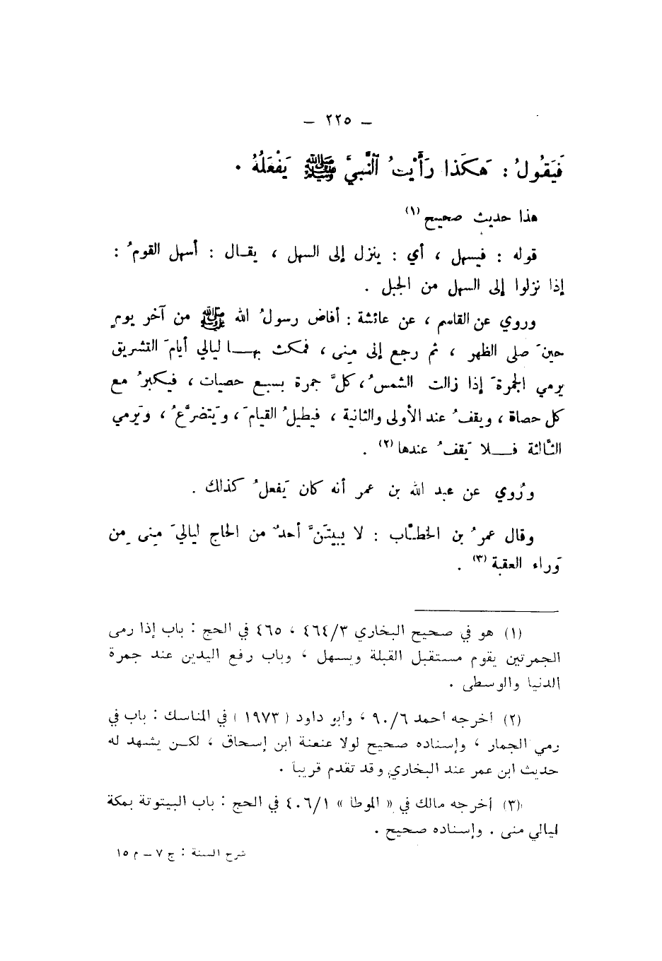 فَيَقُولُ: هَكَذا رَأَيْتُ النَّبِيِّ صَلَّى اللهُ عَلَيْهِ وَسَلَّمَ يَفْعَلُهُ ".