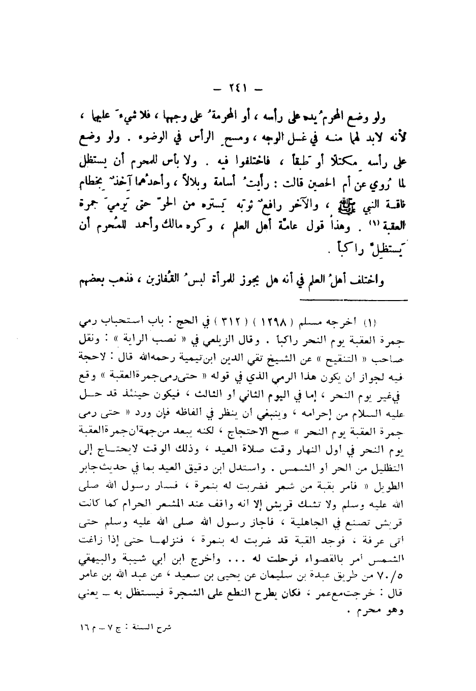 وَهَذَا قَوْلُ عَامَّةِ أَهْلِ الْعِلْمِ، وَكَرِهَ مَالِكٌ، وَأَحْمَدُ لِلْمُحْرِمِ أَنْ يَسْتَظِلَّ رَاكِبًا.