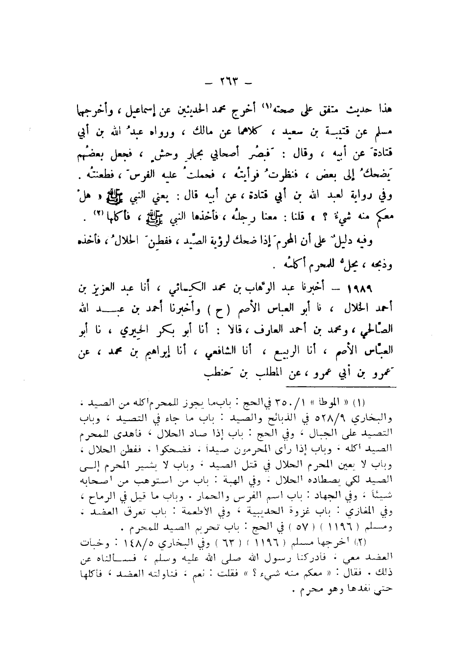 1989 - أَخْبَرَنَا عَبْدُ الْوَهَّابِ بْنُ مُحَمَّدٍ الْكِسَائِيُّ، أَنا عَبْدُ الْعَزِيزِ بْنُ أَحْمَدَ الْخَلالُ، نَا أَبُو الْعَبَّاسِ الْأَصَمُّ.