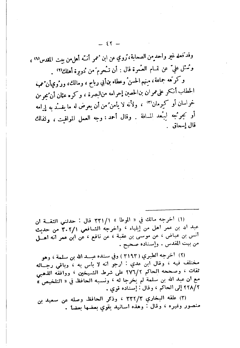 وَقَدْ فَعَلَهُ غَيْرُ وَاحِدٍ مِنَ الصَّحَابَةِ، رُوِيَ عَنِ ابْنِ عُمَرَ، أَنَّهُ أَهَلَّ مِنْ بَيْتِ الْمَقْدِسِ، وَسُئِلَ عَلِيٌّ، عَنْ تَمَامِ الْعُمْرَةِ، قَالَ: أَنْ تُحْرِمَ مِنْ دُوَيْرَةِ أَهْلِكَ.