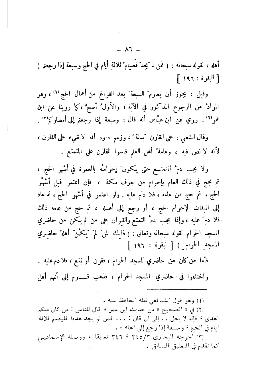 أَهْلِهِ، لِقَوْلِهِ سُبْحَانَهُ: {فَمَنْ لَمْ يَجِدْ فَصِيَامُ ثَلاثَةِ أَيَّامٍ فِي الْحَجِّ وَسَبْعَةٍ إِذَا رَجَعْتُمْ} [الْبَقَرَة: 196].