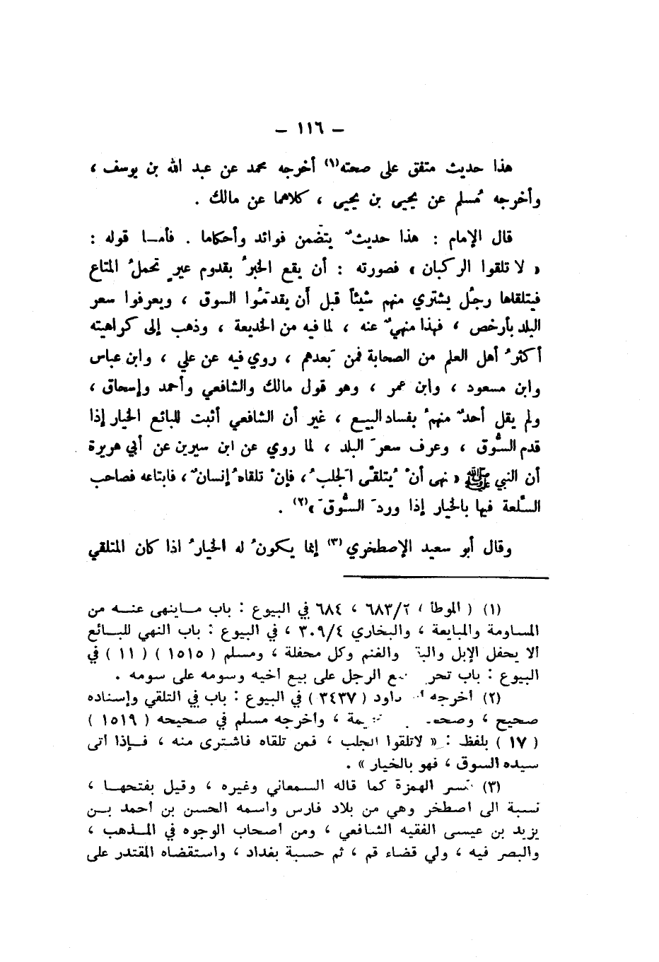 فَأَمَّا قَوْلُهُ: «لَا تَلَقَّوُا الرُّكْبَانَ» فَصُورَتُهُ أَنْ يَقَعَ الْخُبْرُ بِقُدُومِ عِيرٍ تَحْمِلُ الْمَتَاعَ، فَيَتَلَقَّاهَا رَجُلٌ يَشْتَرِي مِنْهُمْ شَيْئًا قَبْلَ أَنْ يَقْدَمُوا السُّوقَ، وَيَعْرِفُوا سِعْرَ الْبَلَدِ، بِأَرْخَصَ.