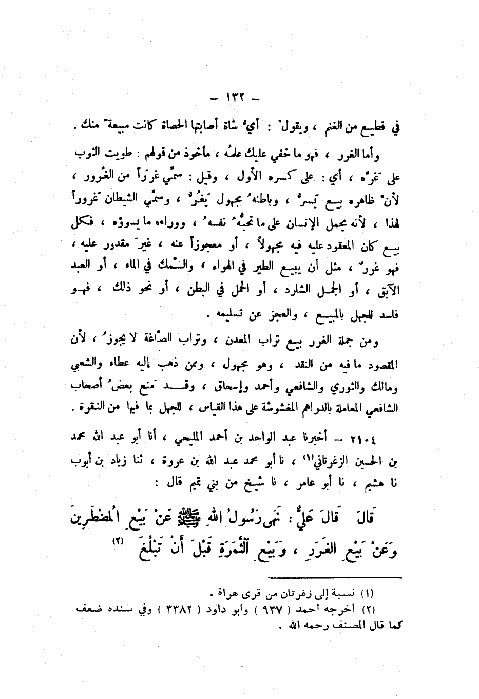 2104 - أَخْبَرَنَا عَبْدُ الْوَاحِدِ بْنُ أَحْمَدَ الْمَلِيحِيُّ، أَنا أَبُو عَبْدِ اللَّهِ مُحَمَّدُ بْنُ الْحُسَيْنِ الزَّغْرِتَانِيُّ، نَا أَبُو مُحَمَّدٍ عَبْدُ اللَّهِ بْنُ عُرْوَةَ، ثَنَا زِيَادُ بْنُ أَيُّوبَ، نَا هُشَيْمٌ، نَا أَبُو عَامِرٍ، نَا شَيْخٌ مِنْ بَنِي تَمِيمٍ، قَالَ: قَالَ عَلِيٌّ: «نَهَى رَسُولُ اللَّه صَلَّى اللهُ عَلَيْهِ وَسَلَّمَ عَنْ بَيْعِ المُضْطَرِّينَ، وَعَنْ بَيْعِ الغَرَرِ، وَبَيْعِ الثَّمَرَةِ قَبْلَ أَنْ تَبْلُغَ».