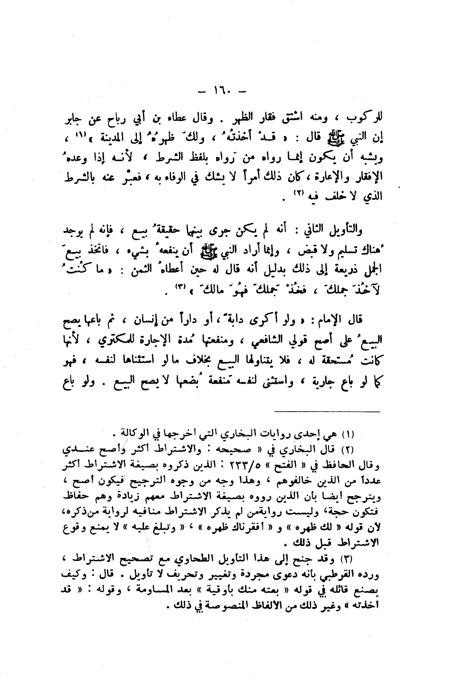 وَقَالَ عَطَاءُ بْنُ أَبِي رَبَاحٍ، عَنْ جَابِرٍ، أَنَّ النَّبِيَّ صَلَّى اللهُ عَلَيْهِ وَسَلَّمَ، قَالَ: «قَدْ أَخَذْتُهُ، وَلَكَ ظَهْرُهُ إِلَى الْمَدِينَةِ»، وَيُشْبِهُ أَنْ يَكُونَ إِنَّمَا رَوَاهُ مَنْ رَوَاهُ بِلَفْظِ الشَّرْطِ، لأَنَّهُ إِذَا وَعَدَهُ الإِفْقَارَ وَالإِعَارَةَ، كَانَ ذَلِكَ أَمْرًا لَا يُشَكُّ فِي الْوَفَاءِ بِهِ، فَعَبَّرَ عَنْهُ بِالشَّرْطِ الَّذِي لَا خَلَفَ فِيهِ.