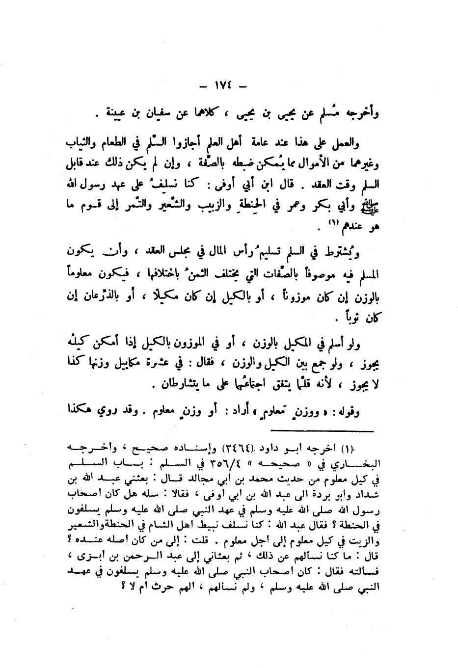 وَالْعَمَلُ عَلَى هَذَا عِنْدَ عَامَّةِ أَهْلِ الْعِلْمِ أَجَازُوا السَّلَمَ فِي الطَّعَامِ، وَالثِّيَابِ، وَغَيْرِهِمَا مِنَ الأَمْوَالِ مِمَّا يُمْكِنُ ضَبْطُهُ بِالصِّفَةِ، وَإِنْ لَمْ يَكُنْ ذَلِكَ عِنْدَ قَابِلِ السَّلَمِ وَقْتَ الْعَقْدِ، قَالَ ابْنُ أَبِي أَوْفَى: كُنَّا نُسْلِفُ عَلَى عَهْدِ رَسُولِ اللَّهِ صَلَّى اللهُ عَلَيْهِ وَسَلَّمَ وَأَبِي بَكْرٍ، وَعُمَرَ، فِي الْحِنْطَةِ، وَالزَّبِيبِ، وَالشَّعَيِرِ، وَالتَّمْرِ، إِلَى قَوْمٍ مَا هُوَ عِنْدَهُمْ.