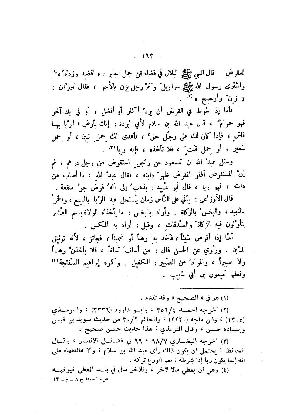 لِلْمُقْرِضِ، قَالَ النَّبِيُّ صَلَّى اللهُ عَلَيْهِ وَسَلَّمَ لِبَلالٍ فِي قَضَاءِ ثَمَنِ جَمَلِ جَابِرٍ: «اقْضِهِ وَزِدْهُ» وَاشْتَرَى رَسُولُ اللَّهِ صَلَّى اللهُ عَلَيْهِ وَسَلَّمَ سَرَاوِيلَ، وَثَمَّ رَجُلٌ يَزِنُ بِالأَجْرِ، فَقَالَ لِلْوَزَّانِ «زِنْ وأَرْجِحْ».