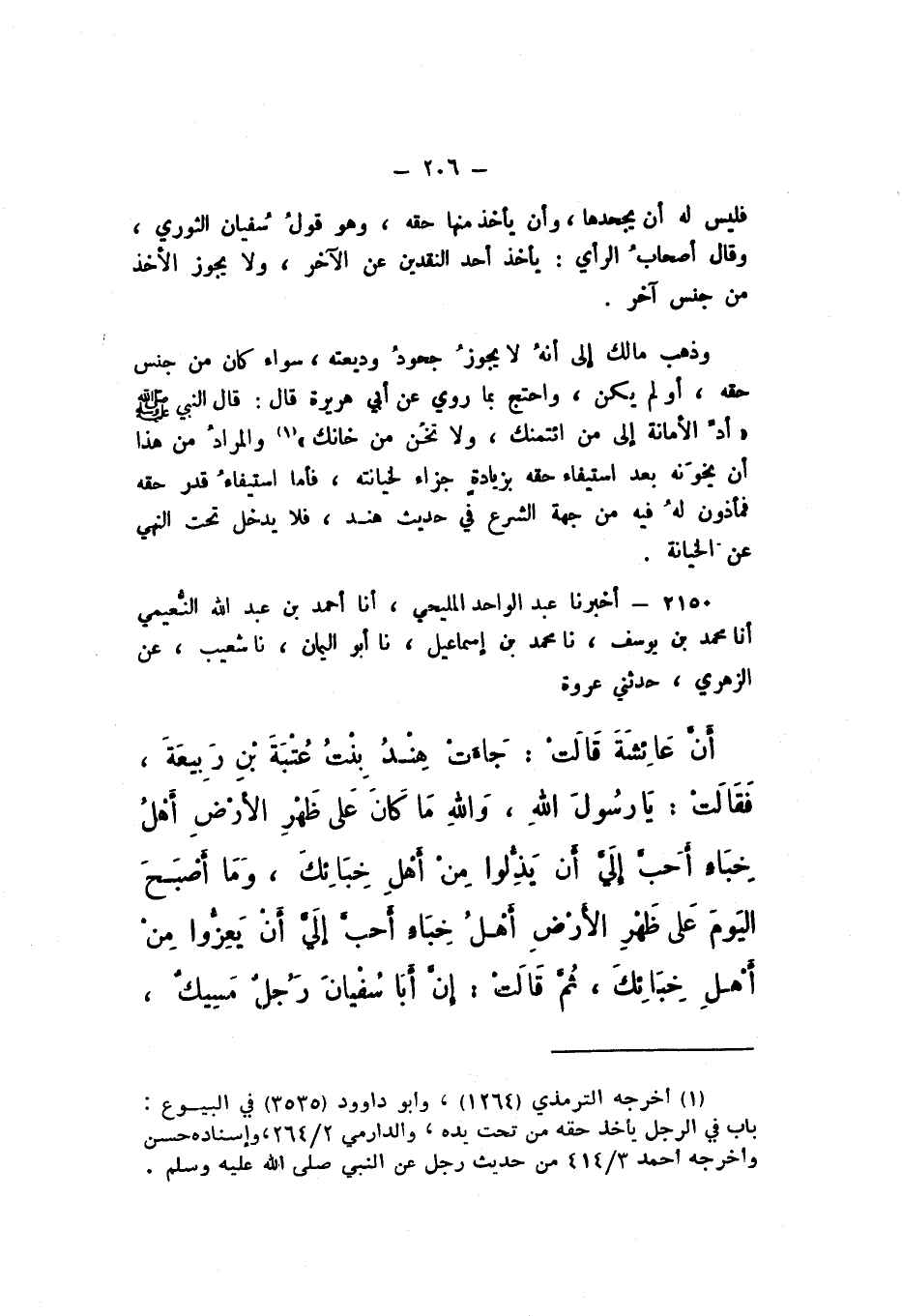 2150 - أَخْبَرَنَا عَبْدُ الْوَاحِدِ الْمَلِيحِيُّ، أَنا أَحْمَدُ بْنُ عَبْدِ اللَّهِ النُّعَيْمِيُّ، أَنا مُحَمَّدُ بْنُ يُوسُفَ، نَا مُحَمَّدُ بْنُ إِسْمَاعِيلَ، أَنا أَبُو الْيَمَانِ، نَا شُعَيْبٌ، عَنِ الزُّهْرِيِّ، حَدَّثَنِي عُرْوَةُ، أَنَّ عَائِشَةَ قَالَتْ: جَاءَتْ هِنْدُ بِنْتُ عُتْبَةَ بْنِ رَبِيعَةَ، فَقَالَتْ: يَا رَسُولَ اللَّهِ، وَاللَّهِ مَا كَانَ عَلَى ظَهْرِ الأَرْضِ أَهْلُ خِبَاءٍ أَحَبَّ إِلَيَّ أَنْ يَذِلُّوا مِنْ أَهْلِ خِبَائِكَ، وَمَا أَصْبَحَ الْيَومَ عَلَى ظَهْرِ الأَرْضِ أَهْلُ خِبَاءٍ أَحَبَّ إِلَيَّ أَنْ يَعِزُّوا مِنْ أَهْلِ خِبَائِكَ، ثُمَّ قَالَتْ: إِنَّ أبَا سُفْيَانَ رَجُلٌ مَسِيكٌ،