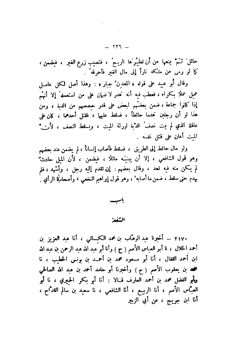 ح وَأَخْبَرَنَا أَبُو حَامِدٍ أَحْمَدُ بْنُ عَبْدِ اللَّهِ الصَّالِحِيُّ، وَأَبُو الْفَضْلِ مُحَمَّدُ بْنُ أَحْمَدَ الْعَارِفُ، قَالا: أَنا أَبُو بَكْرٍ الْحِيرِيُّ، نَا أَبُو الْعَبَّاسِ الأَصَمُّ، أَنا الرَّبِيعُ، أَنا الشَّافِعِيُّ، نَا سَعِيدُ بْنُ سَالِمٍ الْقَدَّاحُ، أَنا ابْنُ جُرَيْجٍ، عَنْ أَبِي الزُّبَيْرِ،