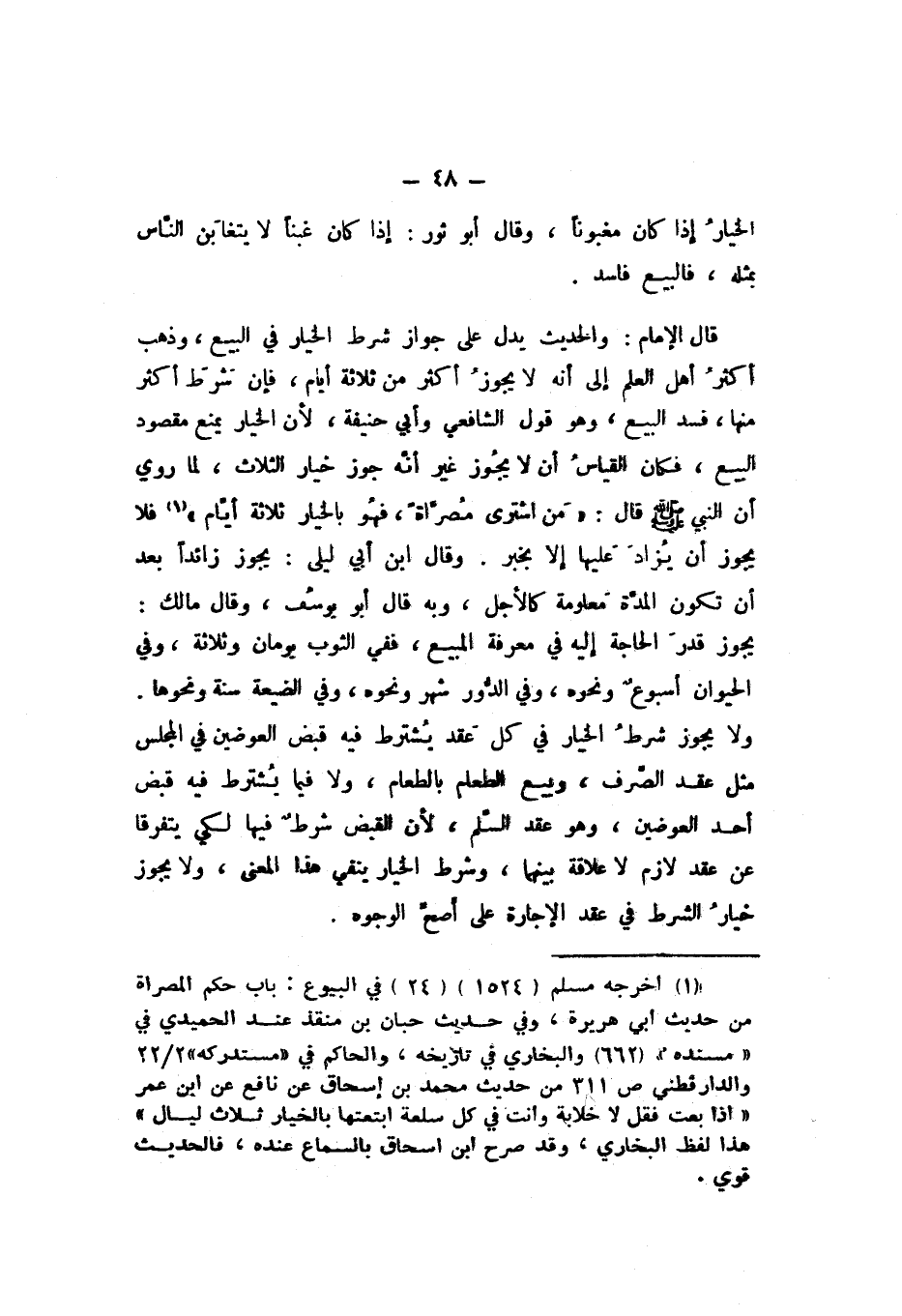 قَالَ الإِمَامُ: وَالْحَدِيثُ يَدُلُّ عَلَى جَوَازِ شَرْطِ الْخِيَارِ فِي الْبَيْعِ.