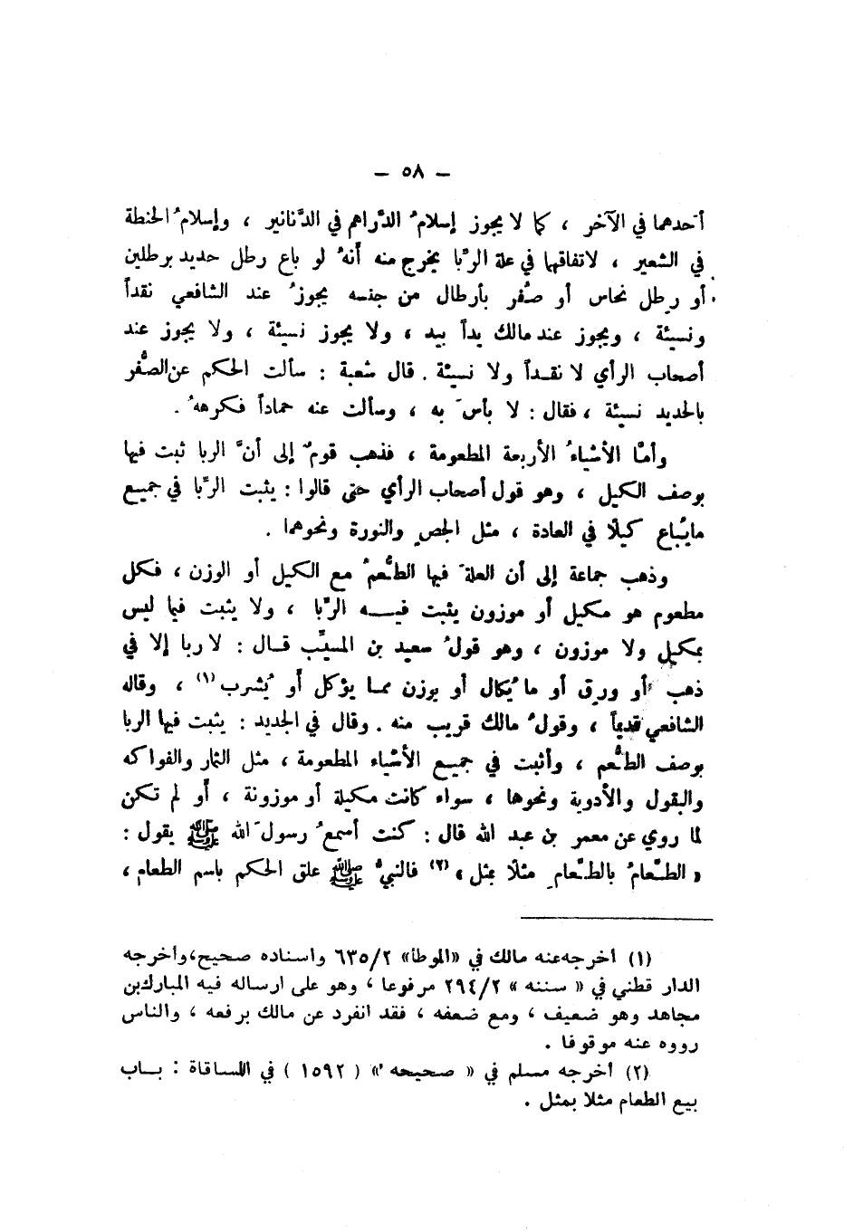 أَحَدِهِمَا فِي الآخَرِ، كَمَا لَا يَجُوزُ إِسْلامُ الدَّرَاهِمِ فِي الدَّنَانِيرِ، وَإِسْلامُ الْحِنْطَةِ فِي الشَّعِيرِ، لاتِّفَاقِهِمَا فِي عِلَّةِ الرِّبَا.