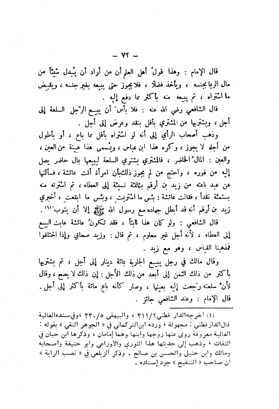 قَالَ الشَّافِعِيُّ: وَلَوْ كَانَ ثَابِتًا، فَقَدْ تَكُونُ عَائِشَةُ عَابَتِ الْبَيْعَ إِلَى الْعَطَاءِ، لأَنَّهُ أَجَلٌ غَيْرُ مَعْلُومٍ، ثُمَّ قَالَ: وَزَيْدٌ صَحَابِيٌّ، وَإِذَا اخْتَلَفُوا، فَمَذْهَبُنَا الْقِيَاسُ، وَهُوَ مَعَ زَيْدٍ.