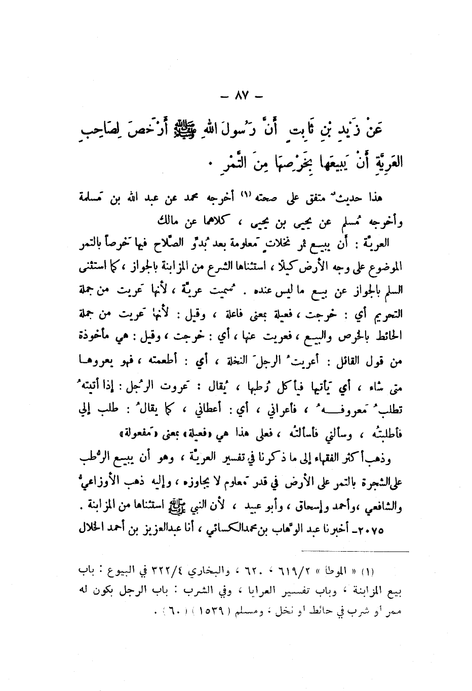 عَنِ زَيْدِ بْنِ ثَابِتٍ «أَنّ رَسُولَ اللَّهِ صَلَّى اللهُ عَلَيْهِ وَسَلَّمَ أَرْخَصَ لِصَاحِبِ الْعَريَّةِ أَنْ يَبِيعَهَا بِخَرْصِهَا مِنَ التَّمْرِ».