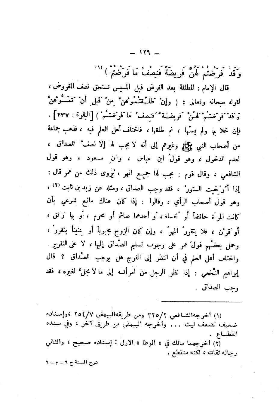 قَالَ الإِمَامُ: الْمُطلقَة بعد الْفَرْض قبل الْمَسِيس تسْتَحقّ نصف الْمَفْرُوض، لقَوْله سُبْحَانَهُ وَتَعَالَى: {وَإِنْ طَلَّقْتُمُوهُنَّ مِنْ قَبْلِ أَنْ تَمَسُّوهُنَّ وَقَدْ فَرَضْتُمْ لَهُنَّ فَرِيضَةً فَنِصْفُ مَا فَرَضْتُمْ} [الْبَقَرَة: 237].