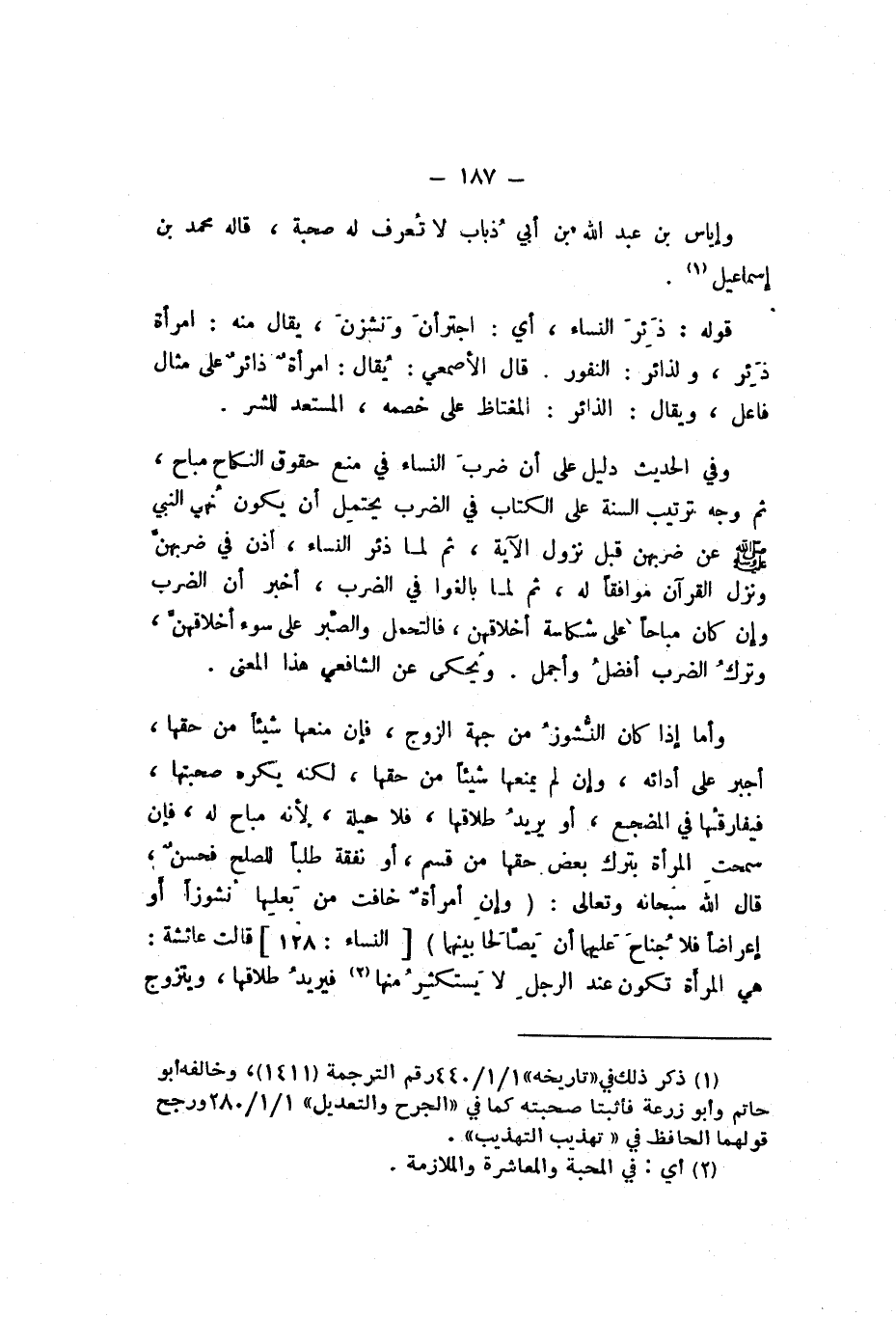 قَوْله: «ذَئِرَ النِّسَاء»، أَي: اجترأن ونشزن، يقَالَ مِنْهُ، امْرَأَة ذَئِر، والذائر: النفور.