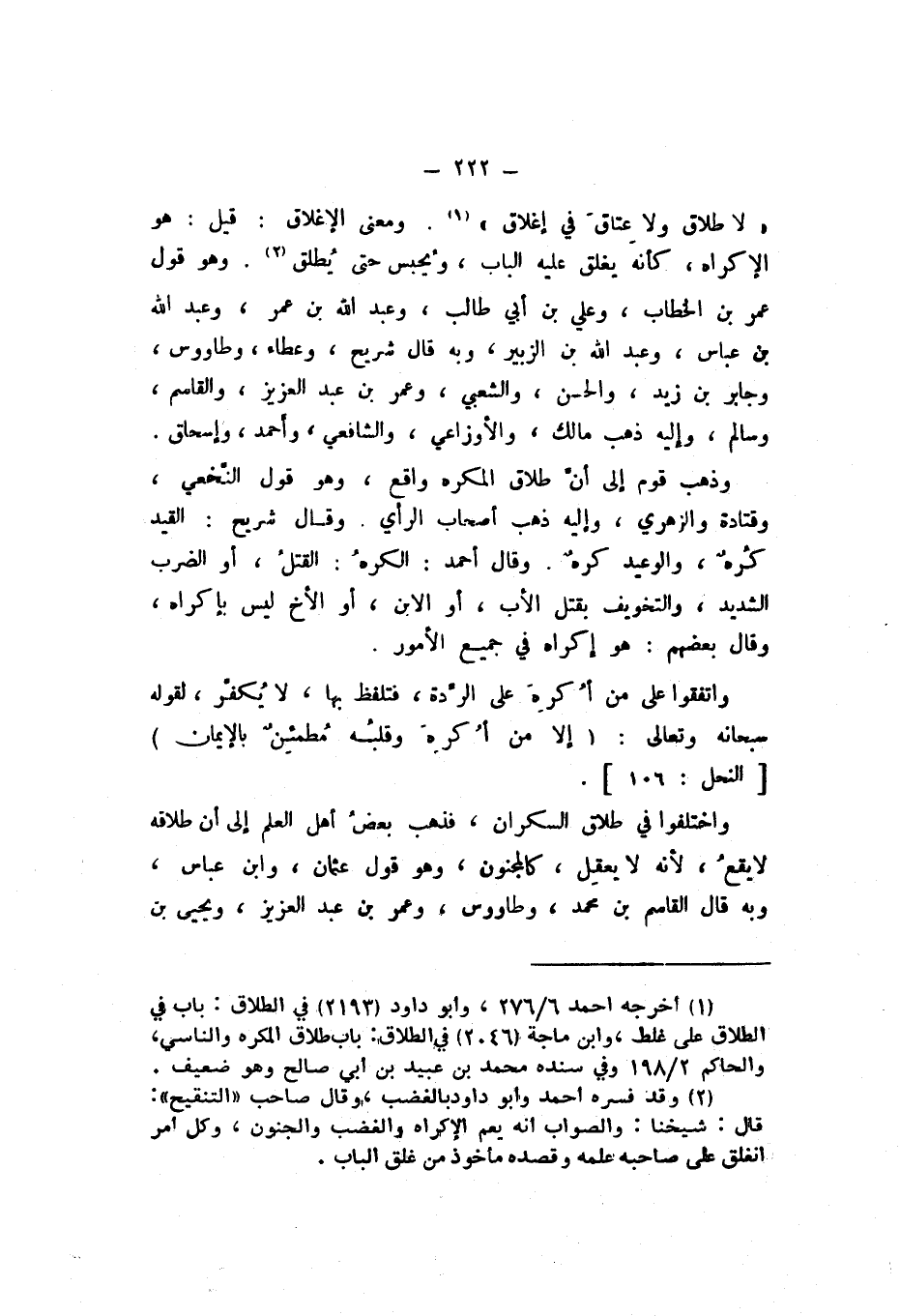 لَا طَلاقَ وَلا عِتَاقَ فِي إِغْلاقٍ».