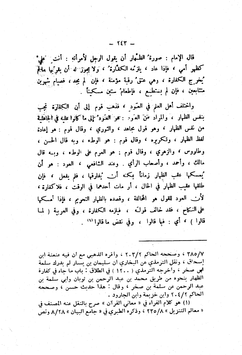 قَالَ الإِمَامُ: صورةُ الظِّهار أَن يَقُول الرجل لامْرَأَته: أنتِ عليَّ كَظهر أُمِّي، فَإِذا عَاد، يلزمُه الكفَّارةُ، وَلَا يجوز لَهُ أَن يقربهَا مَا لم يُخرج الْكَفَّارَة، وَهِي عتقُ رَقَبَة مُؤمنَة، فَإِن لم يجد، فَصِيَام شَهْرَيْن مُتَتَابعين، فَإِن لم يستطِع، فإطعامُ سِتِّينَ مِسْكينا.