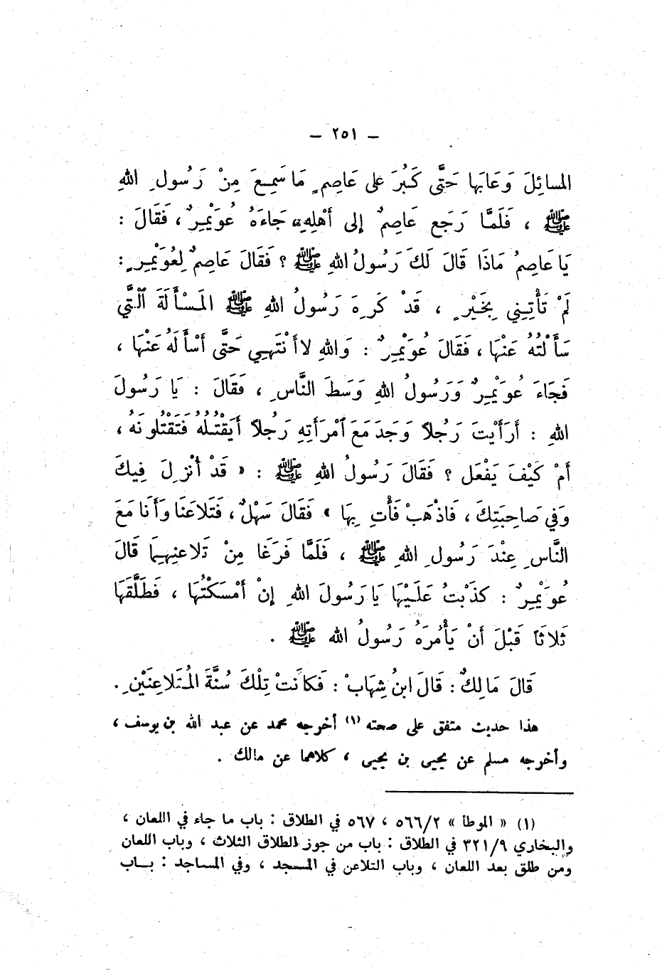 قَالَ مالكٌ: قَالَ ابْن شِهَاب: فكانَتْ تِلْكَ سُنَّةَ المتلاعِنَيْنِ.