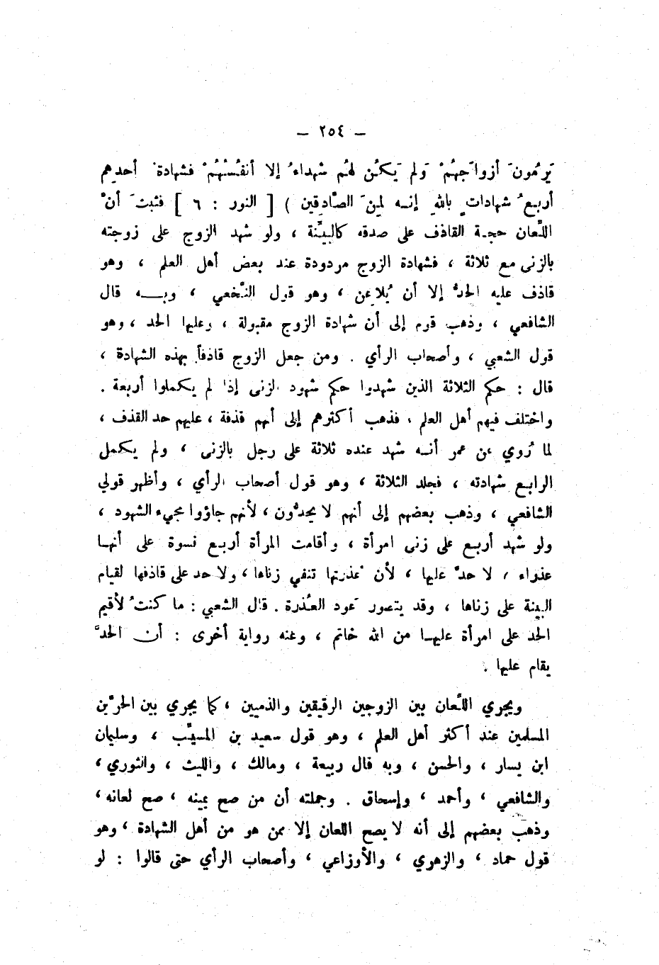 يَرْمُونَ أَزْوَاجَهُمْ وَلَمْ يَكُنْ لَهُمْ شُهَدَاءُ إِلا أَنْفُسُهُمْ فَشَهَادَةُ أَحَدِهِمْ أَرْبَعُ شَهَادَاتٍ بِاللَّهِ إِنَّهُ لَمِنَ الصَّادِقِينَ} [النُّور: 6]، فثبتَ أَن اللِّعان حجَّة الْقَاذِف على صدقه كالبيِّنة، وَلَو شهد الزَّوْج على زَوجته بالزنى مَعَ ثَلَاثَة، فشهادة الزَّوْج مَرْدُودَة عِنْد بعض أهل الْعلم، وَهُوَ قَاذف عَلَيْهِ الحدُّ إِلا أَن يُلاعن، وَهُوَ قَول النَّخعي، وَبِهِ قَالَ الشَّافِعِيّ، وَذهب قوم إِلَى أَن شَهَادَة الزَّوْج مَقْبُولَة، وَعَلَيْهَا الْحَد، وَهُوَ قَول الشَّعْبِيّ، وَأَصْحَاب الرَّأْي، وَمن جعل الزَّوْج قَاذِفا بِهَذِهِ الشَّهَادَة، قَالَ: حكم الثَّلَاثَة الَّذين شهدُوا حكم شُهُود الزِّنَى إِذا لم يكملوا أَرْبَعَة.