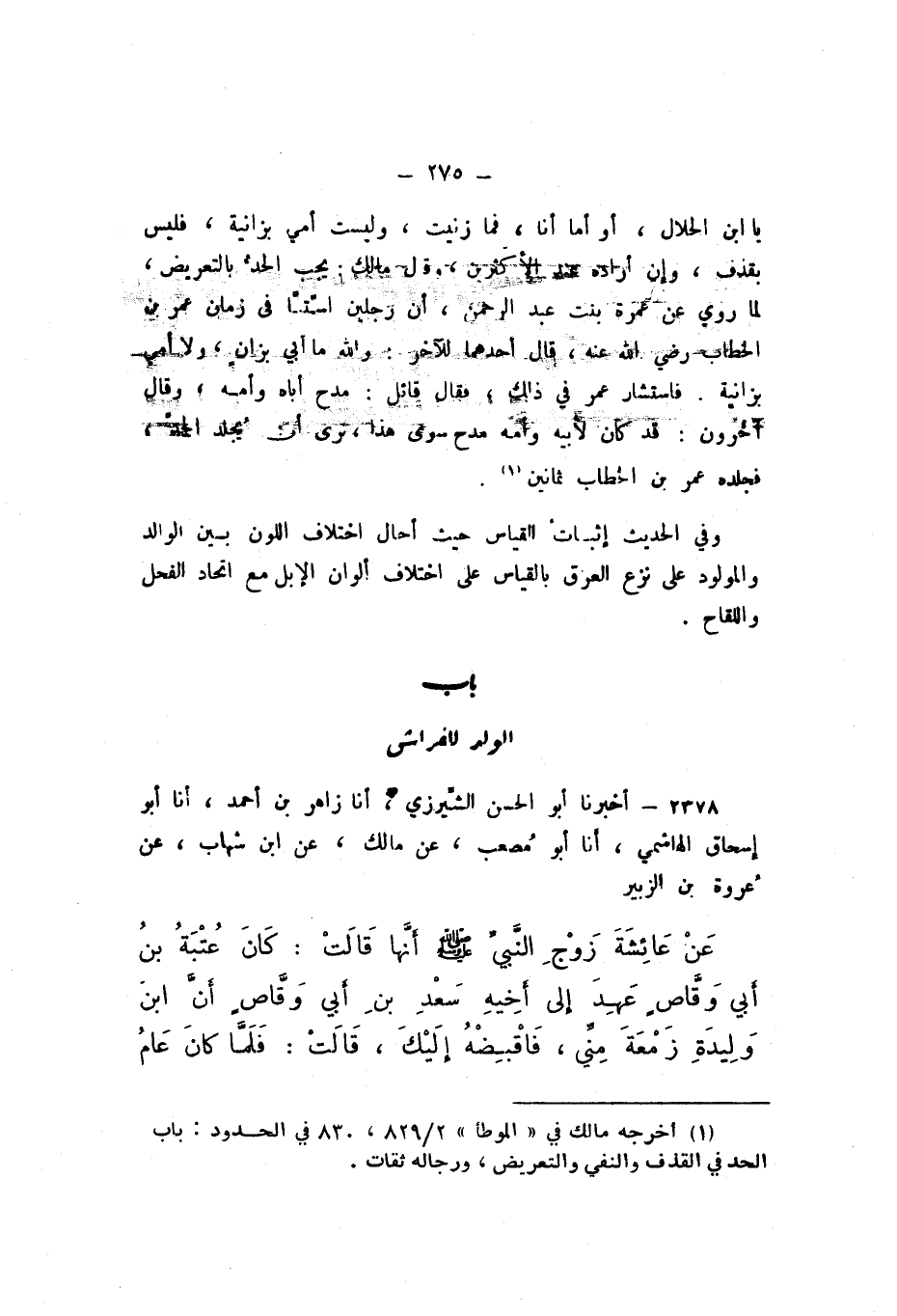 2378 - أَخْبَرَنَا أَبُو الْحَسَنِ الشِّيرَزِيُّ، أَنا زَاهِرُ بْنُ أَحْمَدَ، أَنا أَبُو إِسْحَاقَ الْهَاشِمِيُّ، أَنا أَبُو مُصْعَبٍ، عَنْ مَالِكٍ، عَنِ ابْنِ شِهَابٍ، عَنْ عُرْوَةَ بْنِ الزُّبَيْرِ، عَنْ عَائِشَةَ زَوْجِ النَّبِيِّ صَلَّى اللهُ عَلَيْهِ وَسَلَّمَ أَنَّهَا قَالَتْ: كَانَ عُتْبَةُ بْنُ أَبِي وَقَّاصٍ عَهِدَ إِلَى أَخِيهِ سَعِيدِ بْنِ أَبِي وَقَّاصٍ أَنَّ ابْنَ وَلِيدَةِ زمْعَةَ مِنِّي، فَاقْبِضْهُ إِلَيْكَ، قَالَتْ: فَلَمَّا كَانَ عَامَ