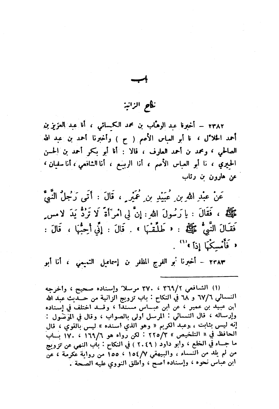 2382 - أَخْبَرَنَا عَبْدُ الْوَهَّابِ بْنُ مُحَمَّدٍ الْكِسَائِيُّ، أَنا عَبْدُ الْعَزِيزِ بْنُ أَحْمَدَ الْخَلالُ، نَا أَبُو الْعَبَّاسِ الأَصَمُّ.